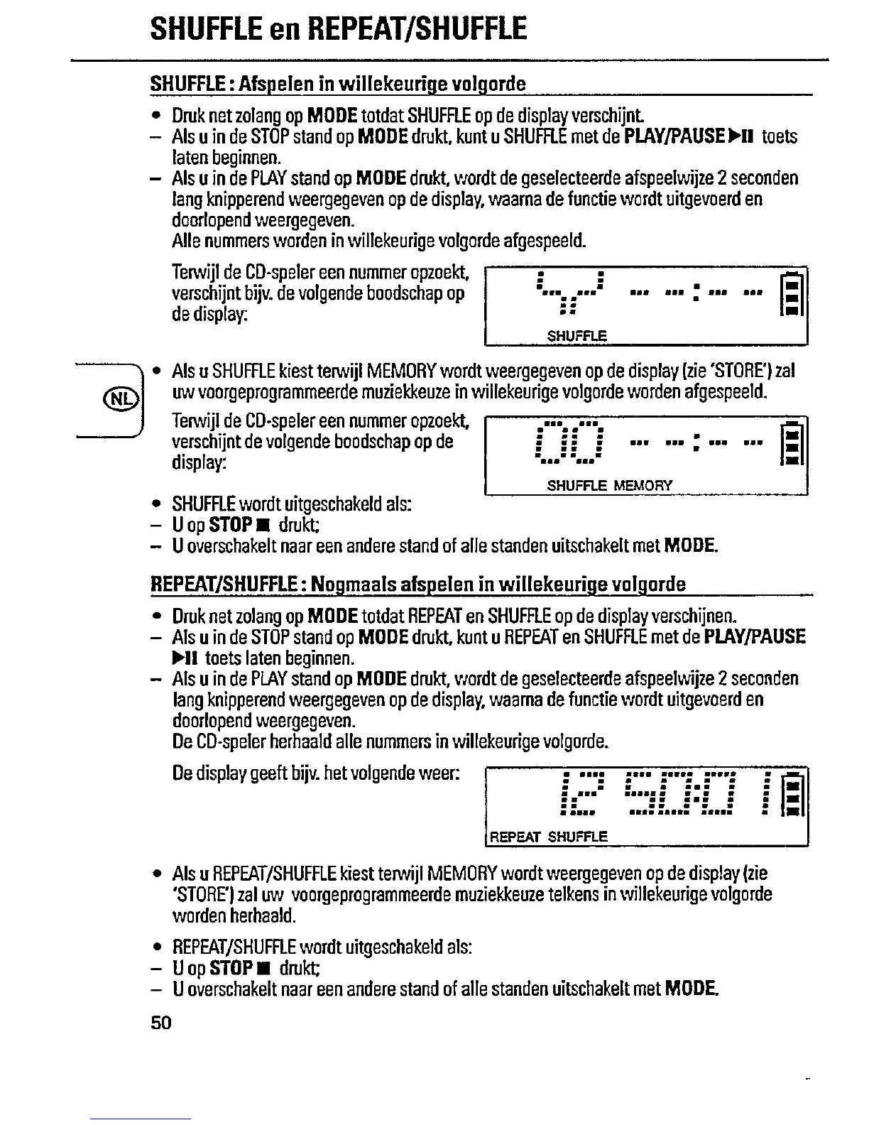 Philips AZ6821 - Shuffle and Repeat Modes; SHUFFLE Random Playback; REPEAT;SHUFFLE Random Repeat