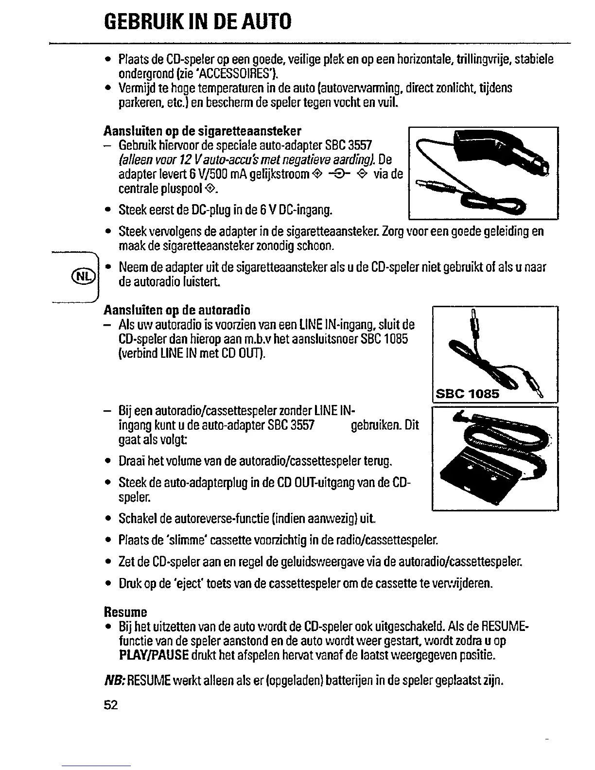 Philips AZ6821 - Using the CD Player in a Car; Car Placement and Safety; Connecting to Car Lighter; Connecting to Car Radio