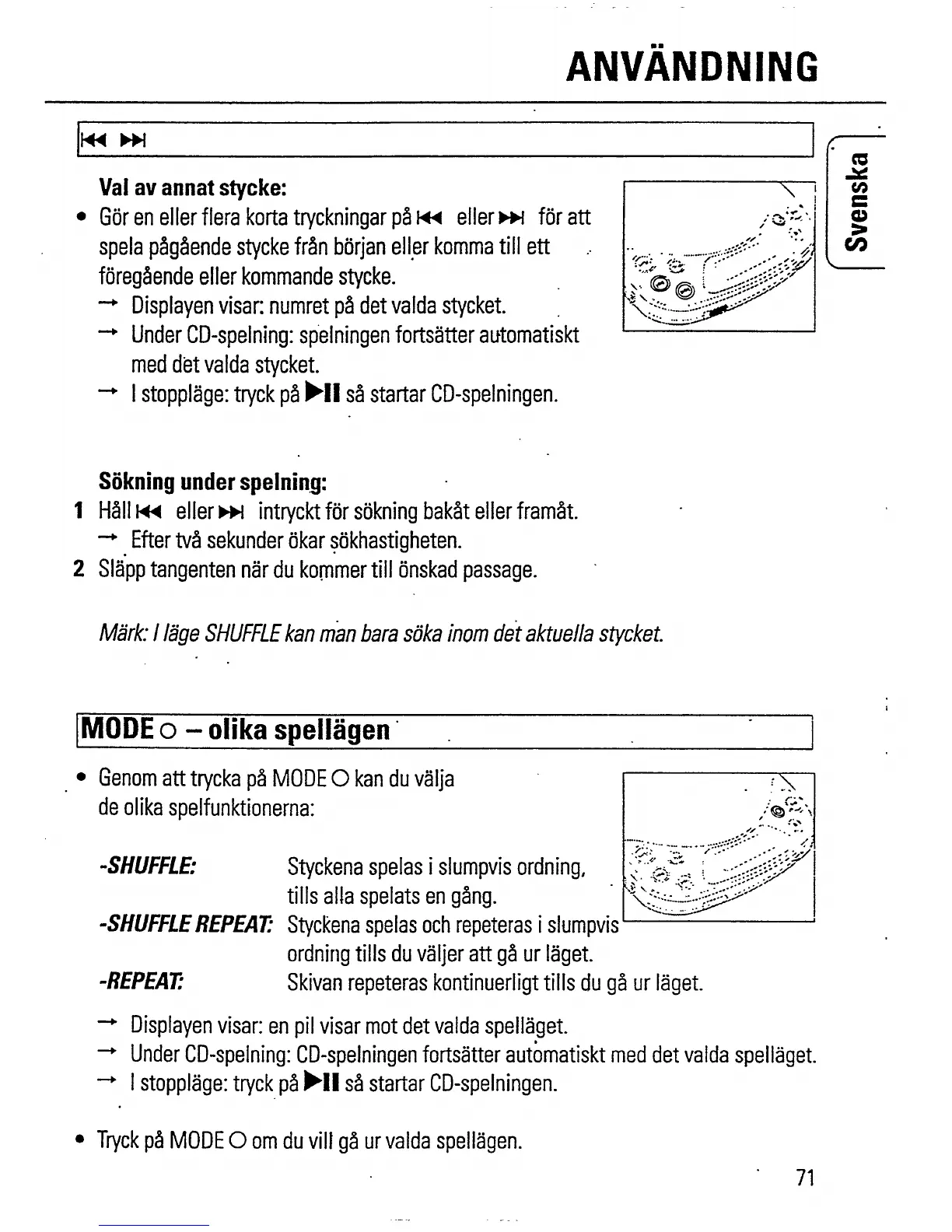 Philips AZ6844 - Portable Cd-player - Operation; Track Selection and Search; Playback Modes (Shuffle, Repeat)
