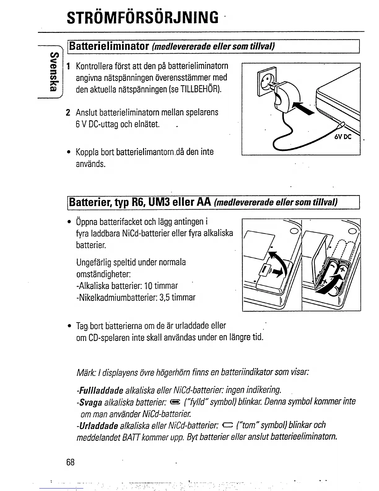Philips AZ6844 - Portable Cd-player - Power Supply; Using the Battery Eliminator; Using Batteries