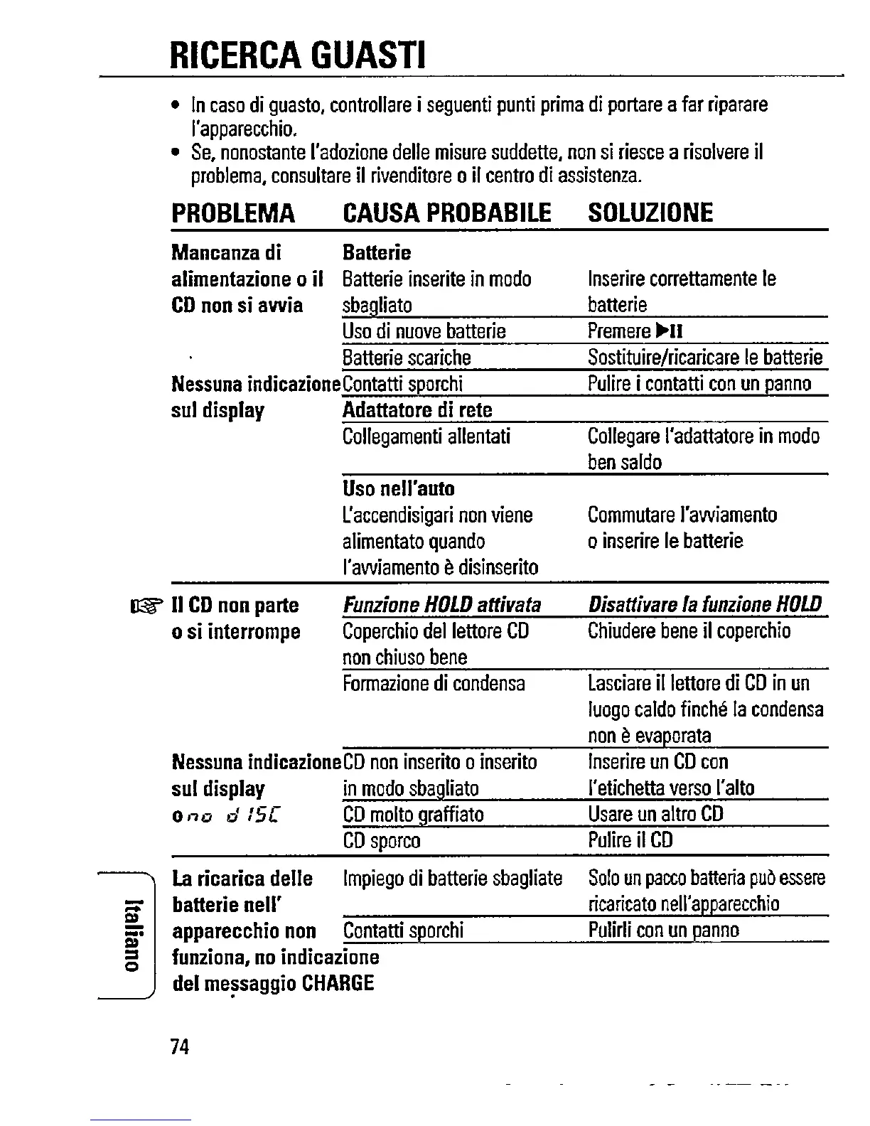 Philips AZ7271 - Cd Personal - Troubleshooting Power and Playback Issues; Power and CD Start-up Problems; Display Errors and Charging Issues