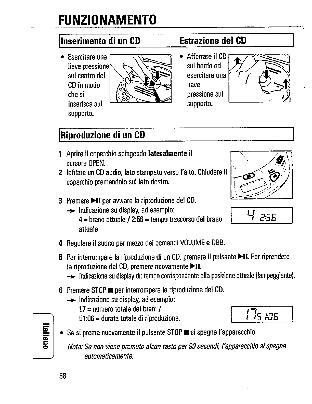 Philips AZ7271 - Cd Personal - CD Playback Operations; Inserting and Removing CDs; Starting, Pausing, and Stopping Playback
