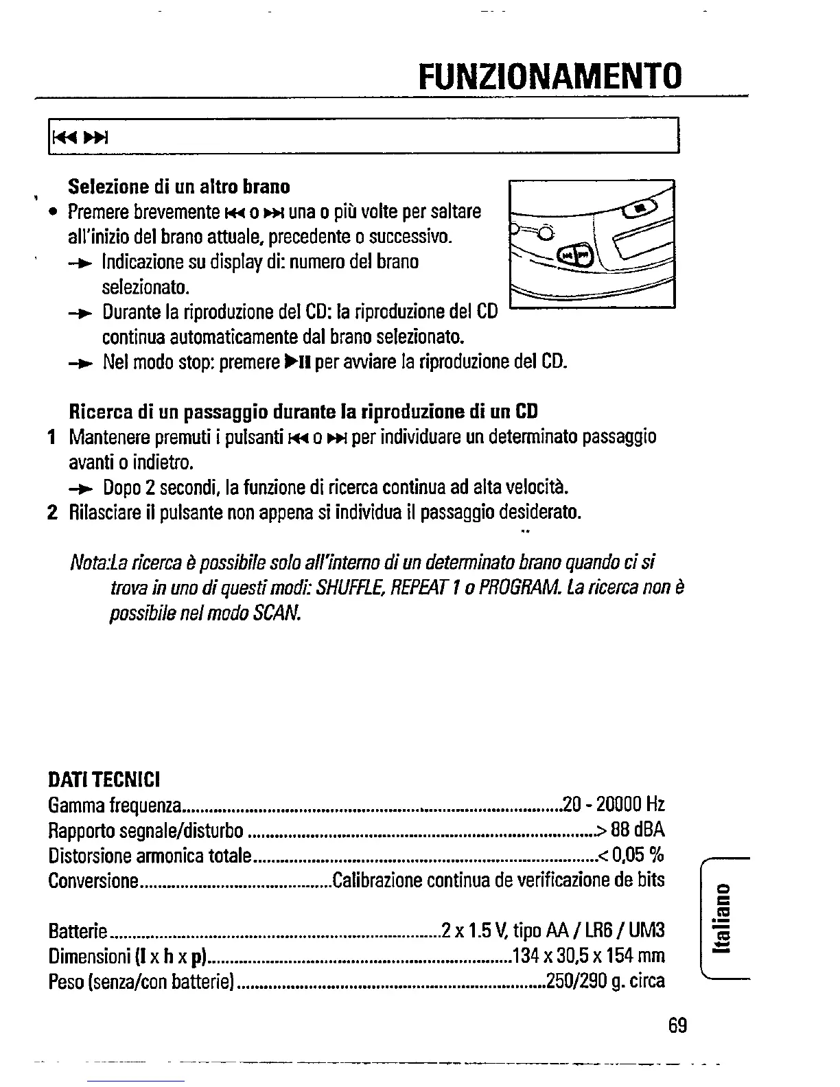 Philips AZ7271 - Cd Personal - Track Navigation and Technical Data; Selecting and Searching Tracks