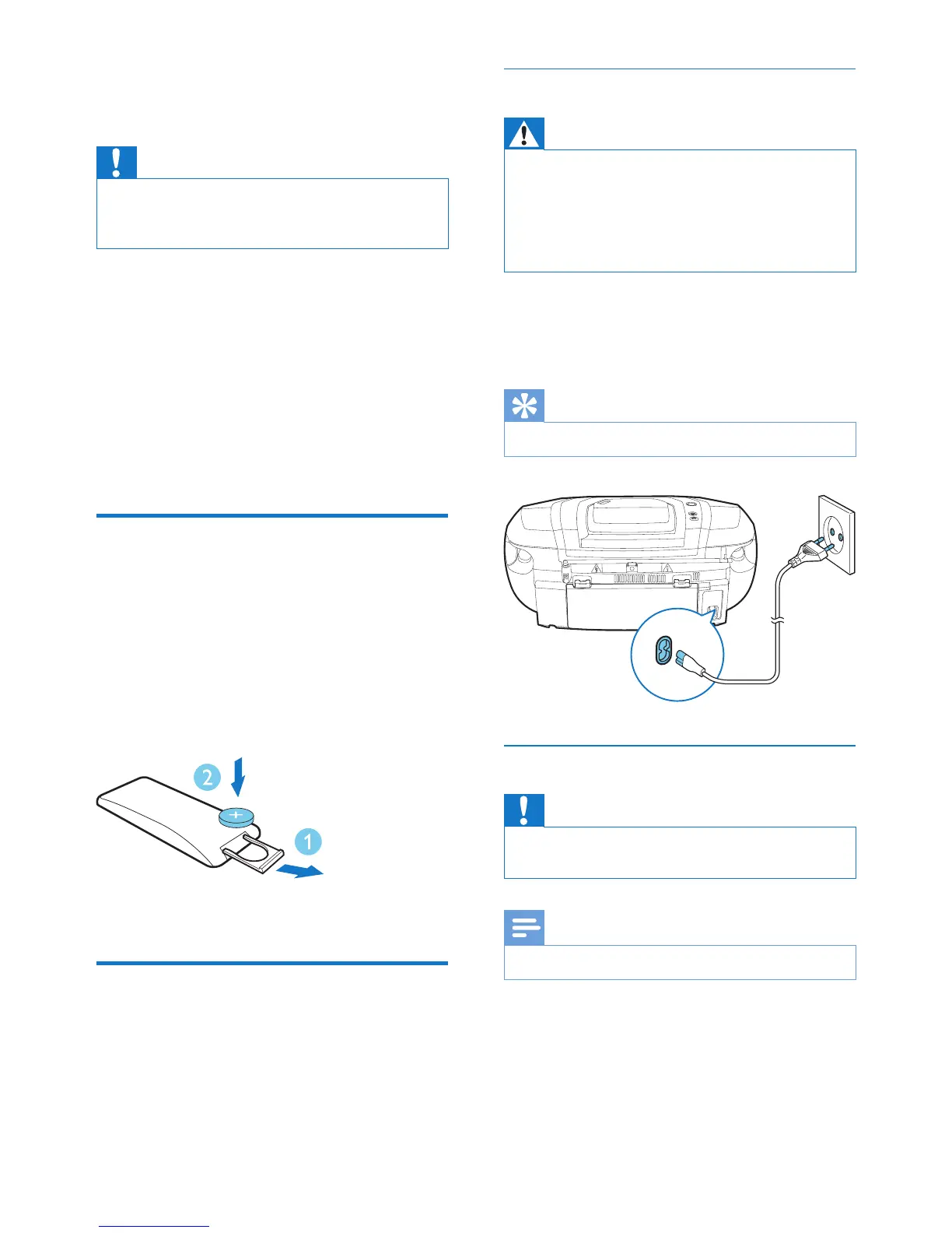 • Risk of electric shock! When you disconnect the AC