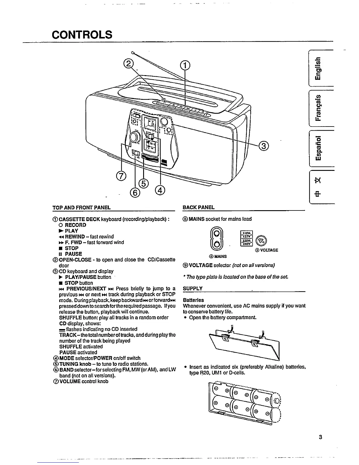 Philips AZ8040/20 - CONTROLS; TOP AND FRONT PANEL