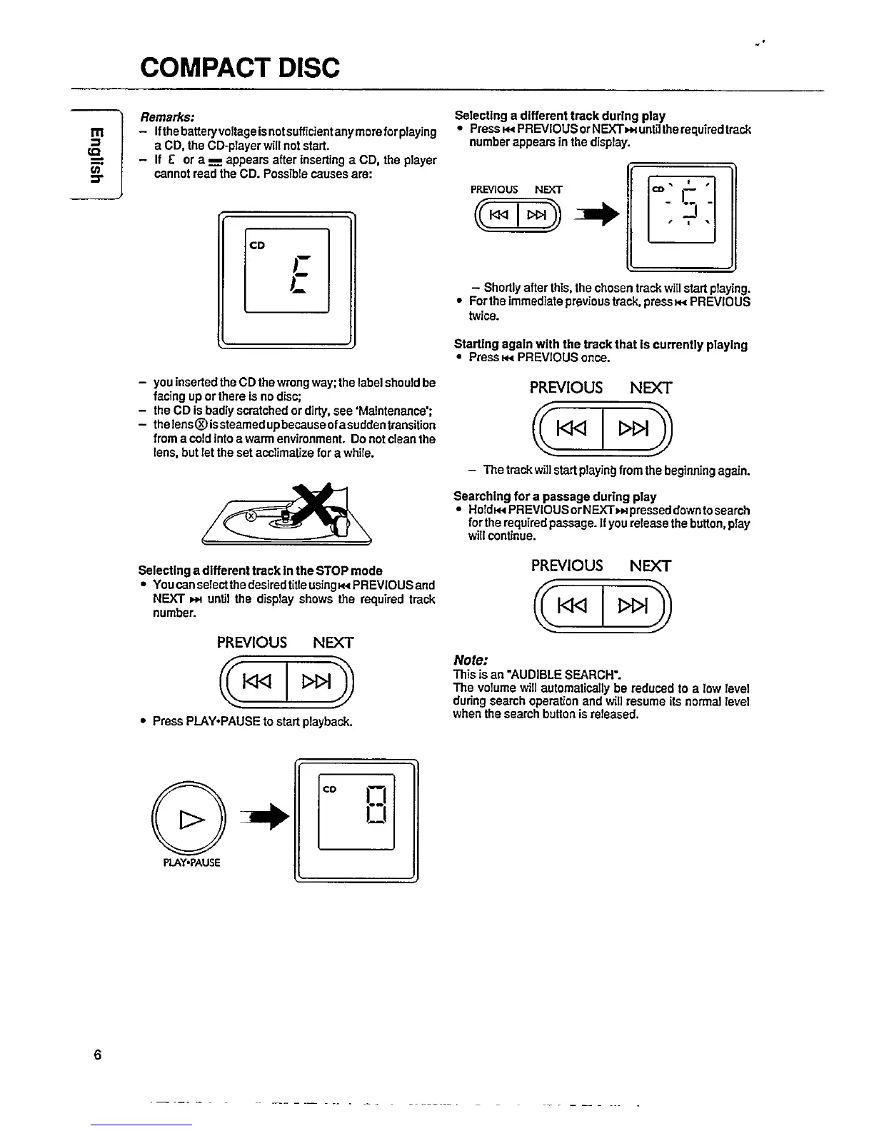 Philips AZ8040/20 - Selecting a Different Track During Play; Starting Again with the Track that Is Currently Playing; Searching for a Passage During Play
