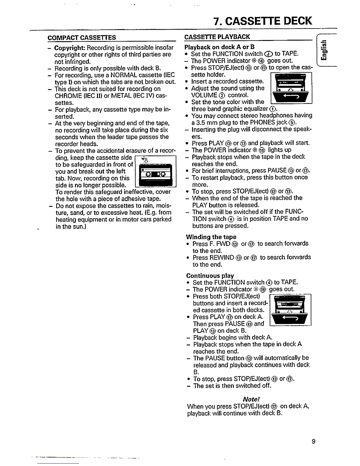 Philips AZ8348/05 - 7. CASSETTE DECK; CASSETTE PLAYBACK