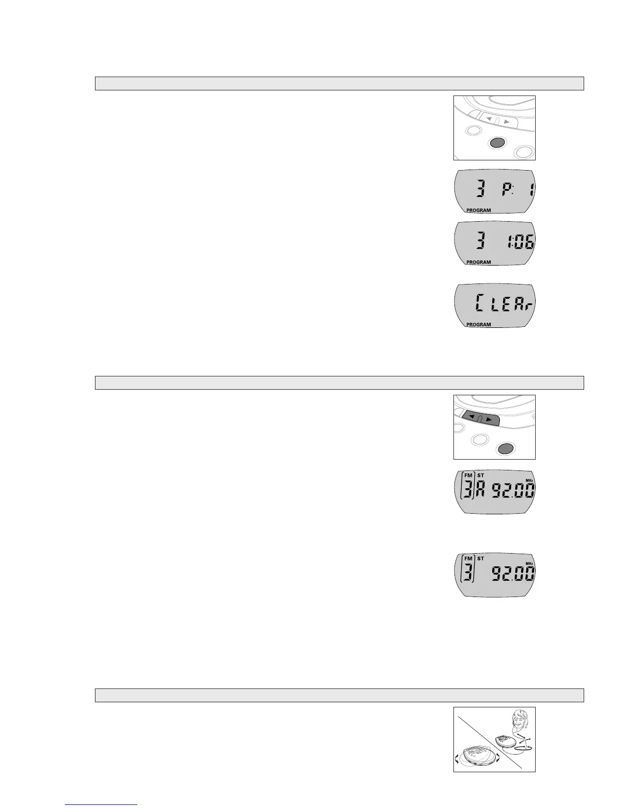 y PROGRAM lights up; the track number programmed and P with the total number of