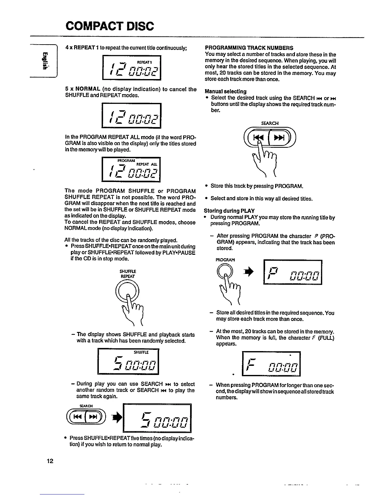 Philips AZ9350 - Programming Track Numbers; Manual Selecting; Storing During Play