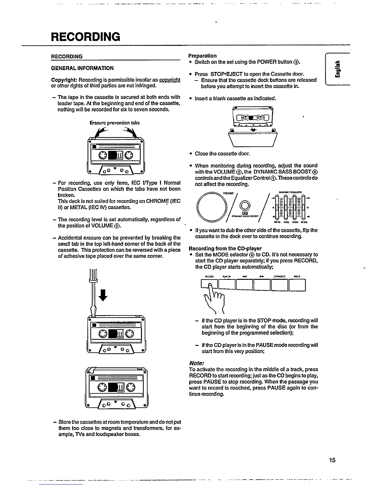 Philips AZ9350 - Recording; General Information; Preparation; Recording from the CD Player