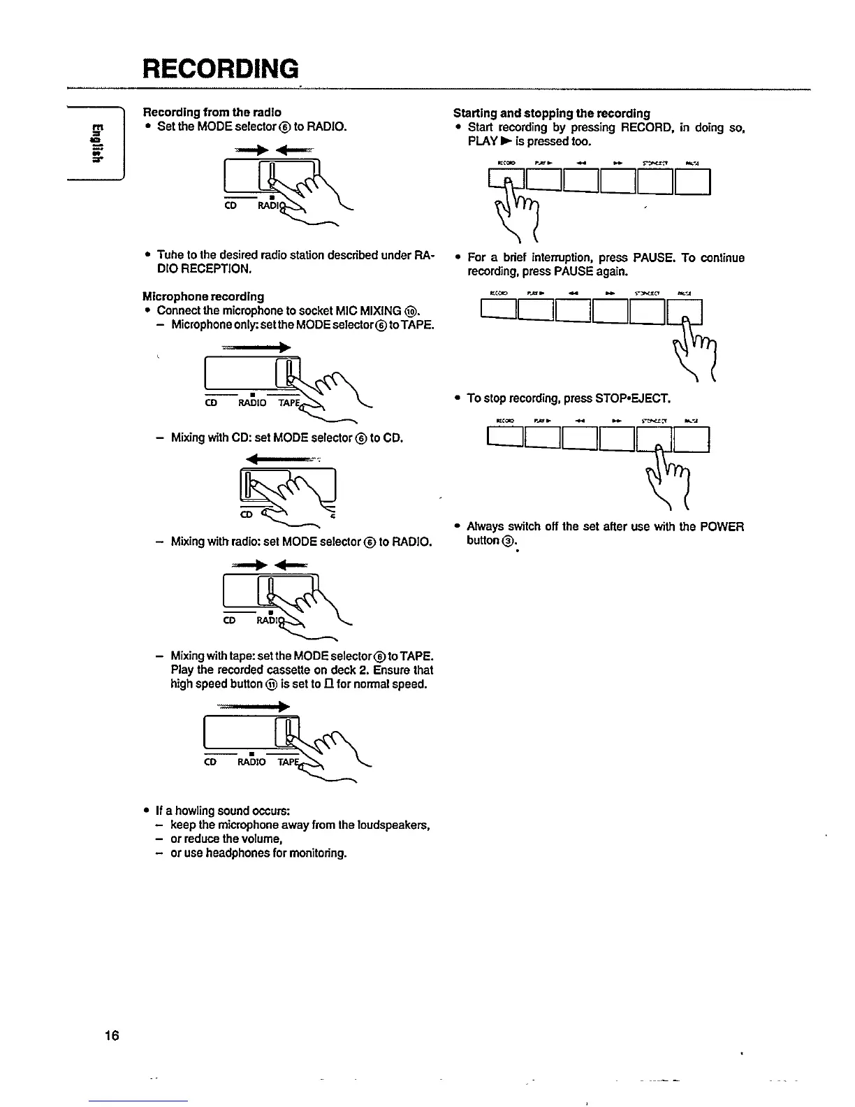 Philips AZ9350 - Recording from the Radio; Microphone Recording; Starting and Stopping the Recording
