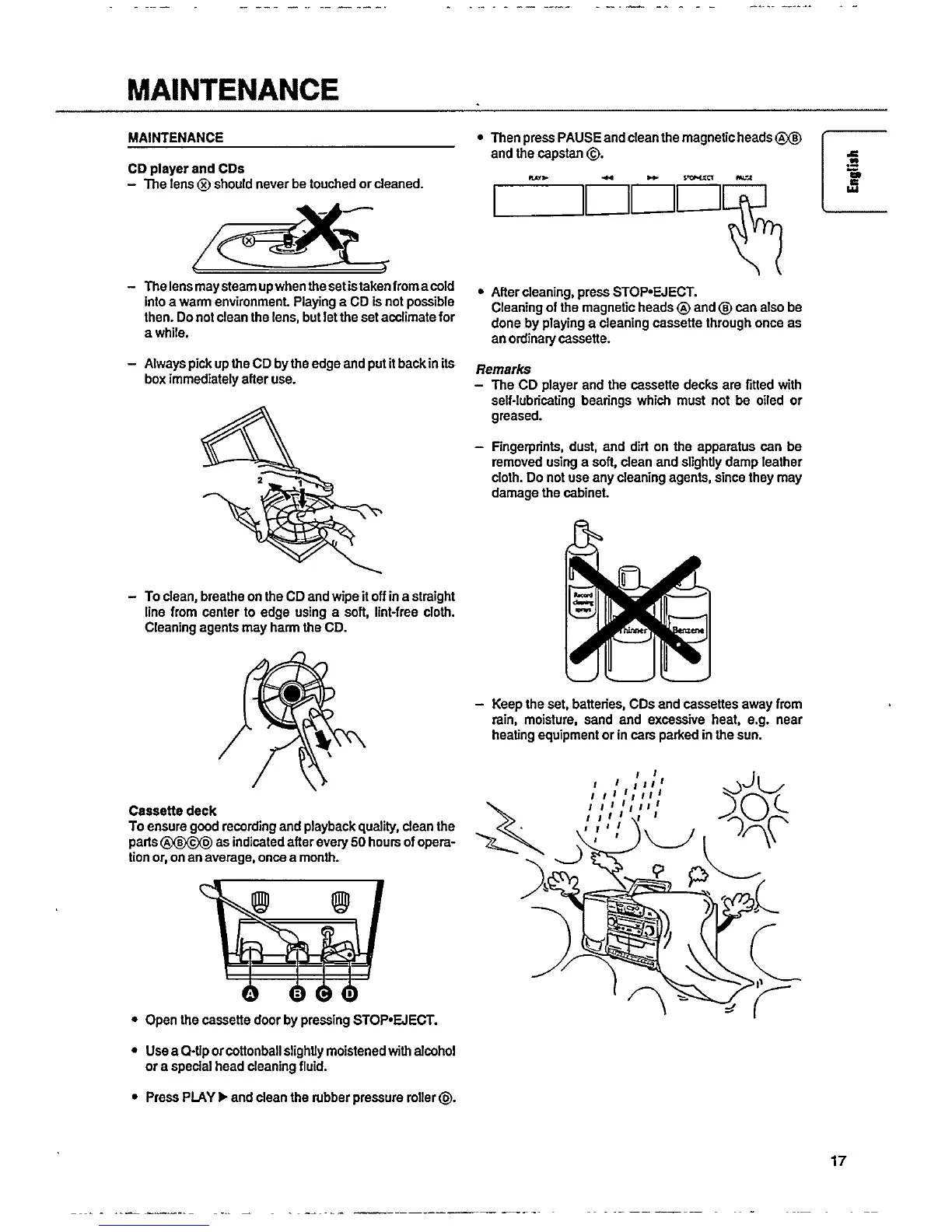 Philips AZ9350 - Maintenance; CD Player and Cds; Cassette Deck