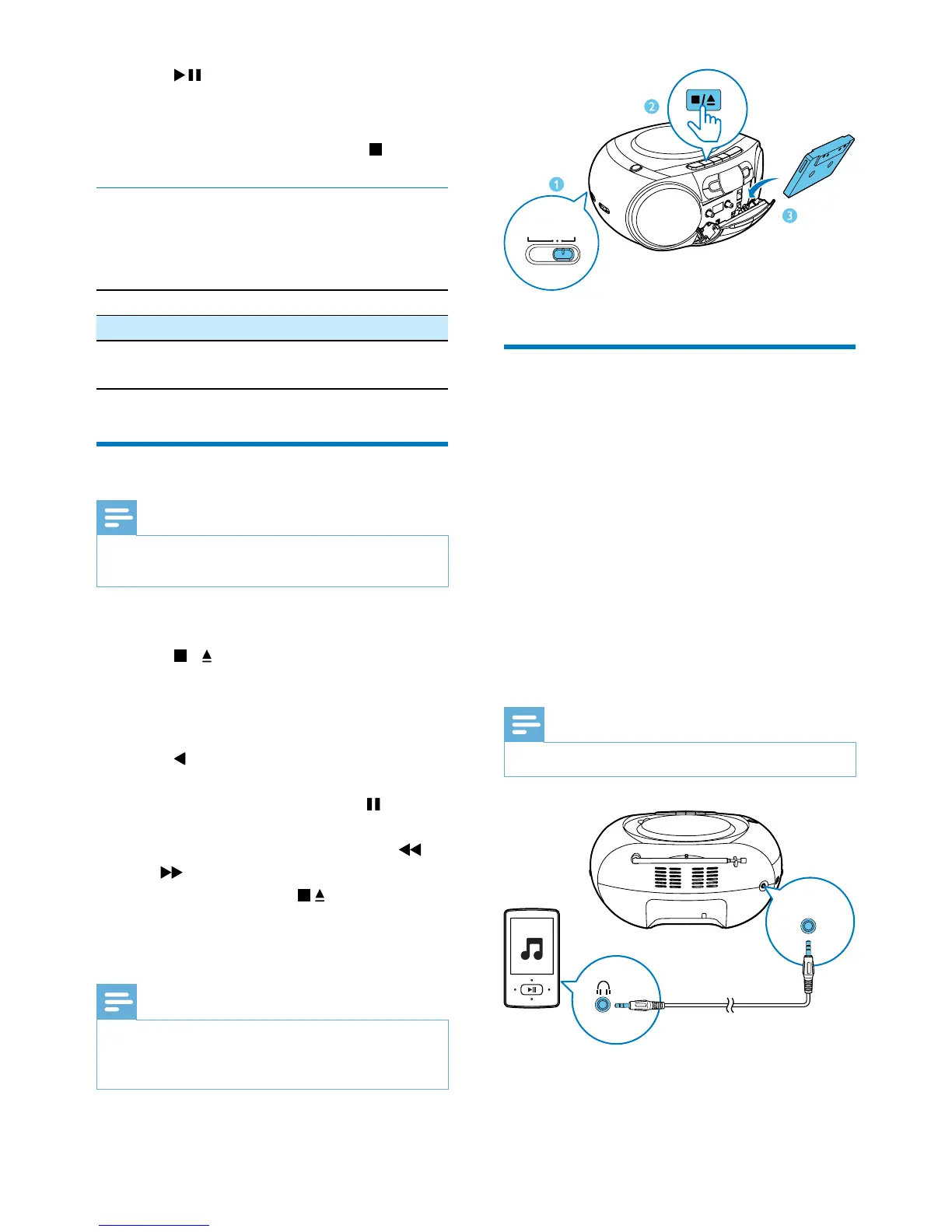 In playback mode, cassette will be stopped
