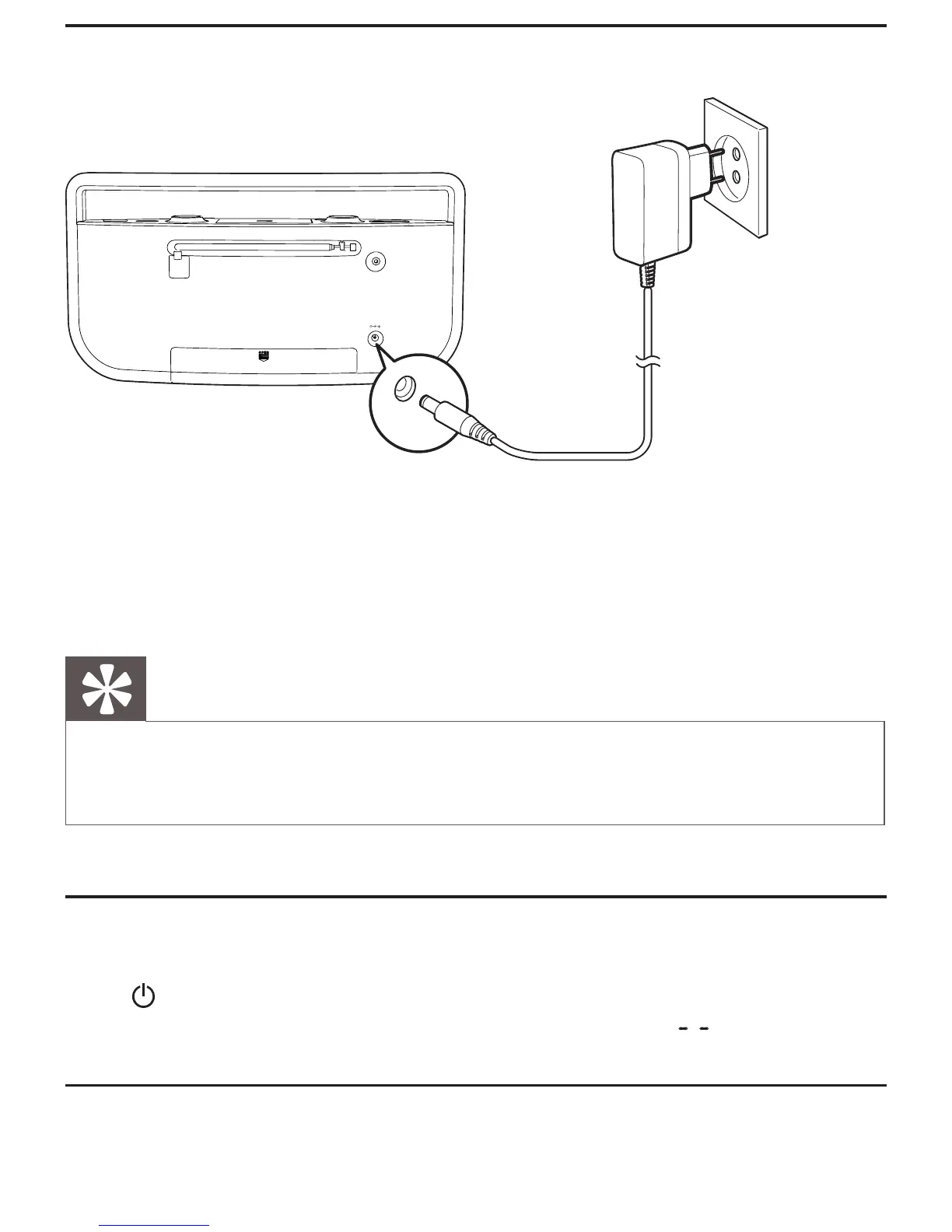 • the DC 9V socket on the back of CD sound machine, and