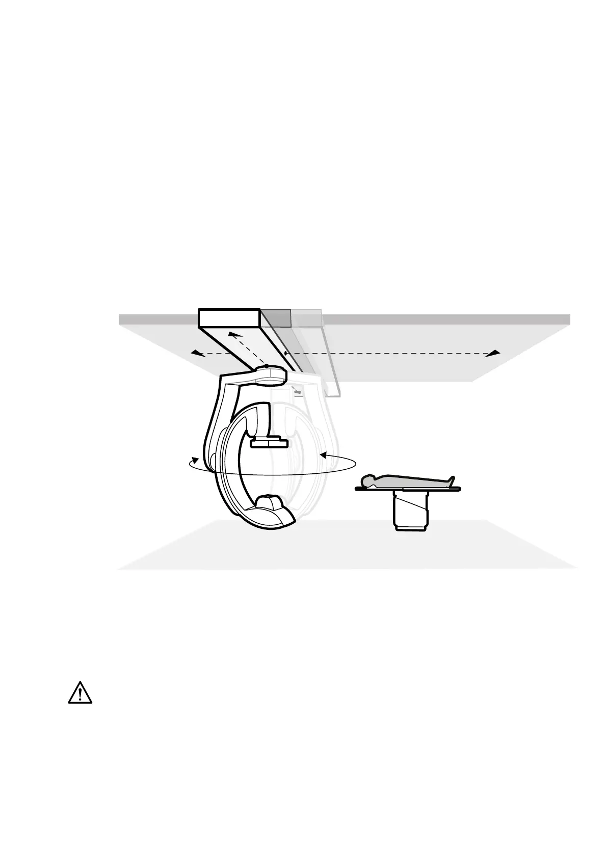 If the FlexMove opon is installed, the C-arm moves longitudinally and laterally on ceiling-mounted