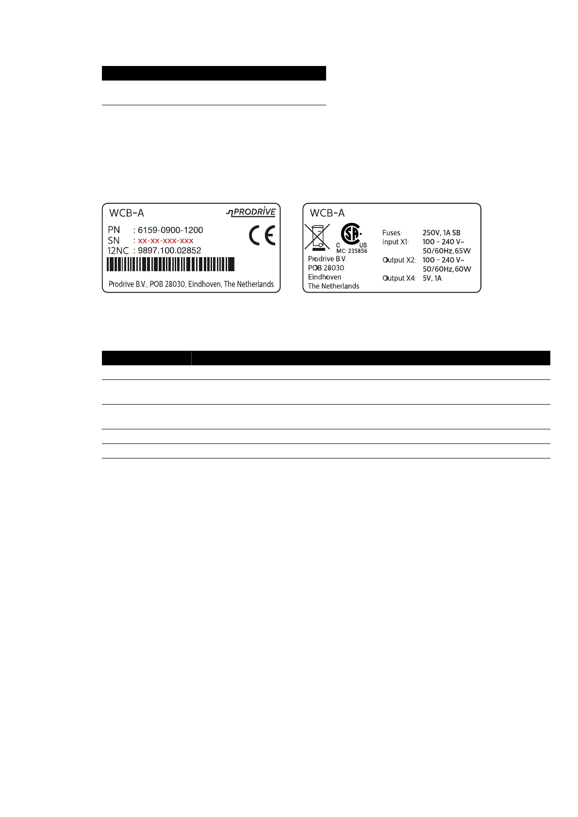 Type/Model WCB-x (PRODRIVE) Fuse r