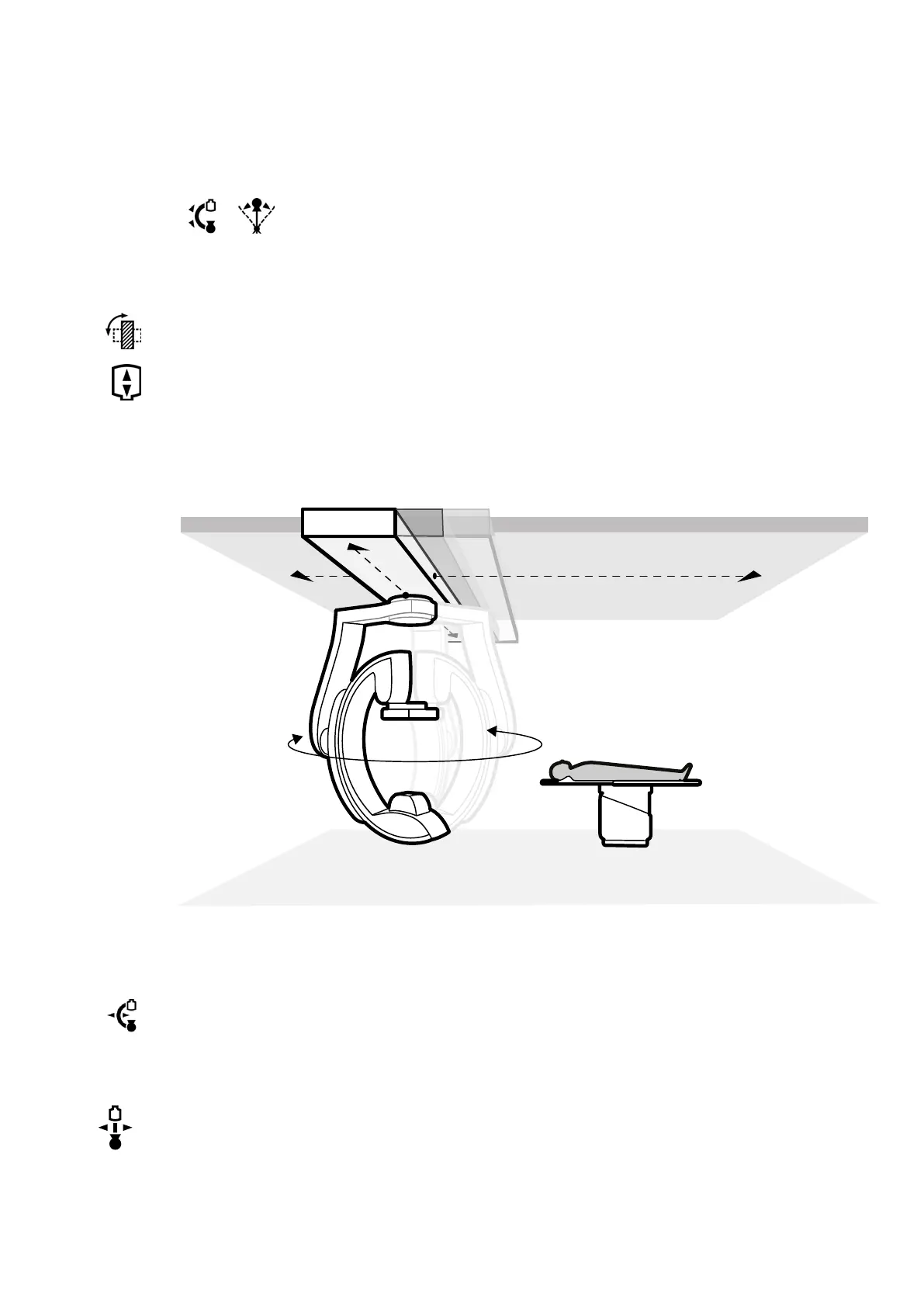 b Use the handgrips to push or pull the C-arm to the desired posion.
