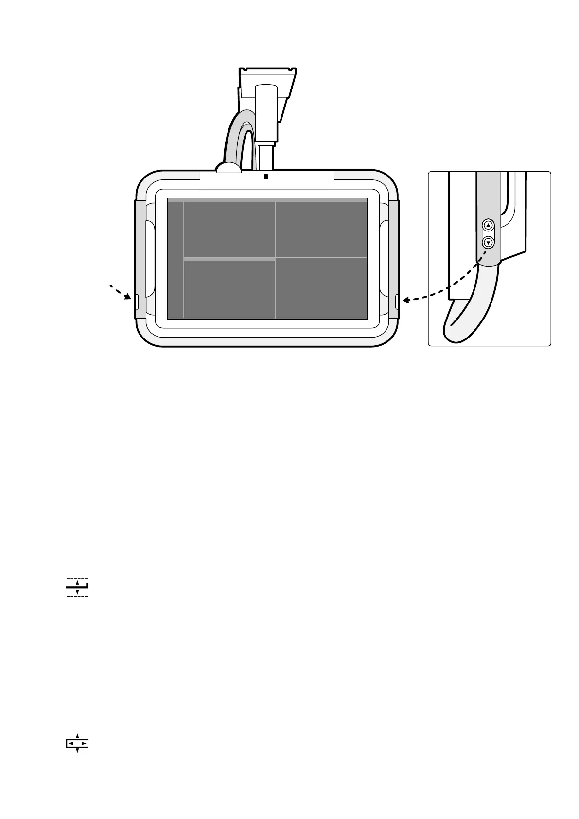 2 Push or pull the handgrip to adjust the X and Y posion of the monitor ceiling suspension.
