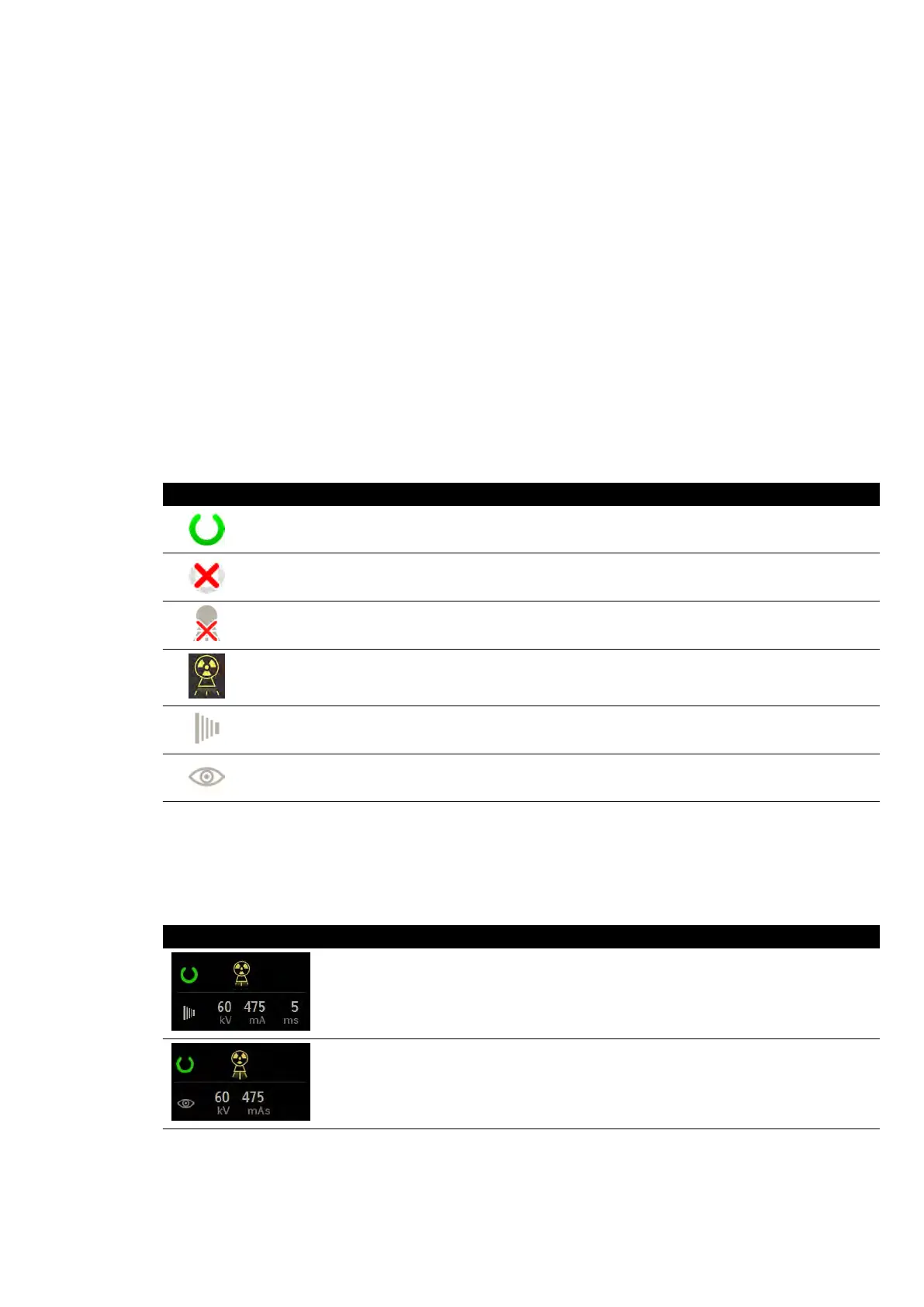 When acquiring images, the X-ray protocol sengs in use are displayed in the status area in the control