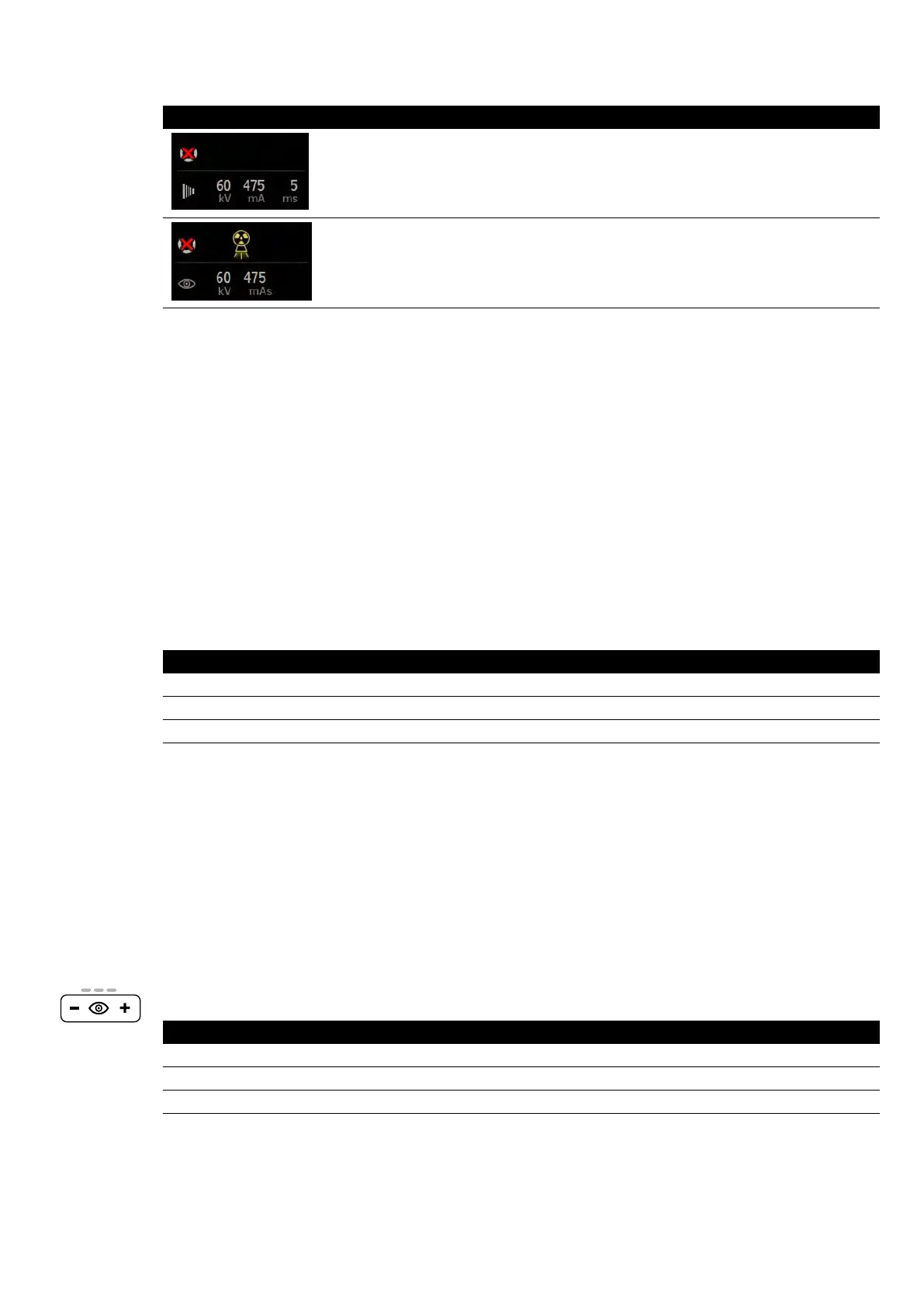 During uoroscopy, the following indicaons are displayed in the status area in the control room and