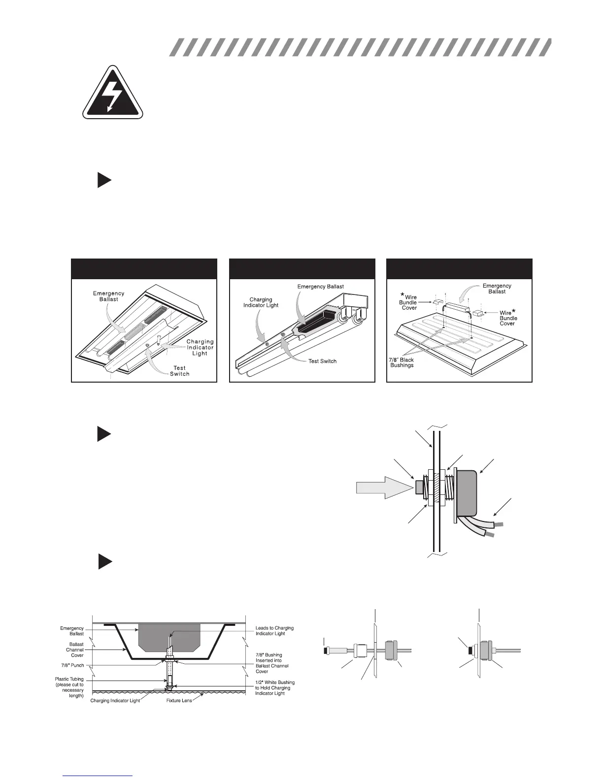 > Depending on the type of xture in use install emergency ballast using one of the methods illustrated below.