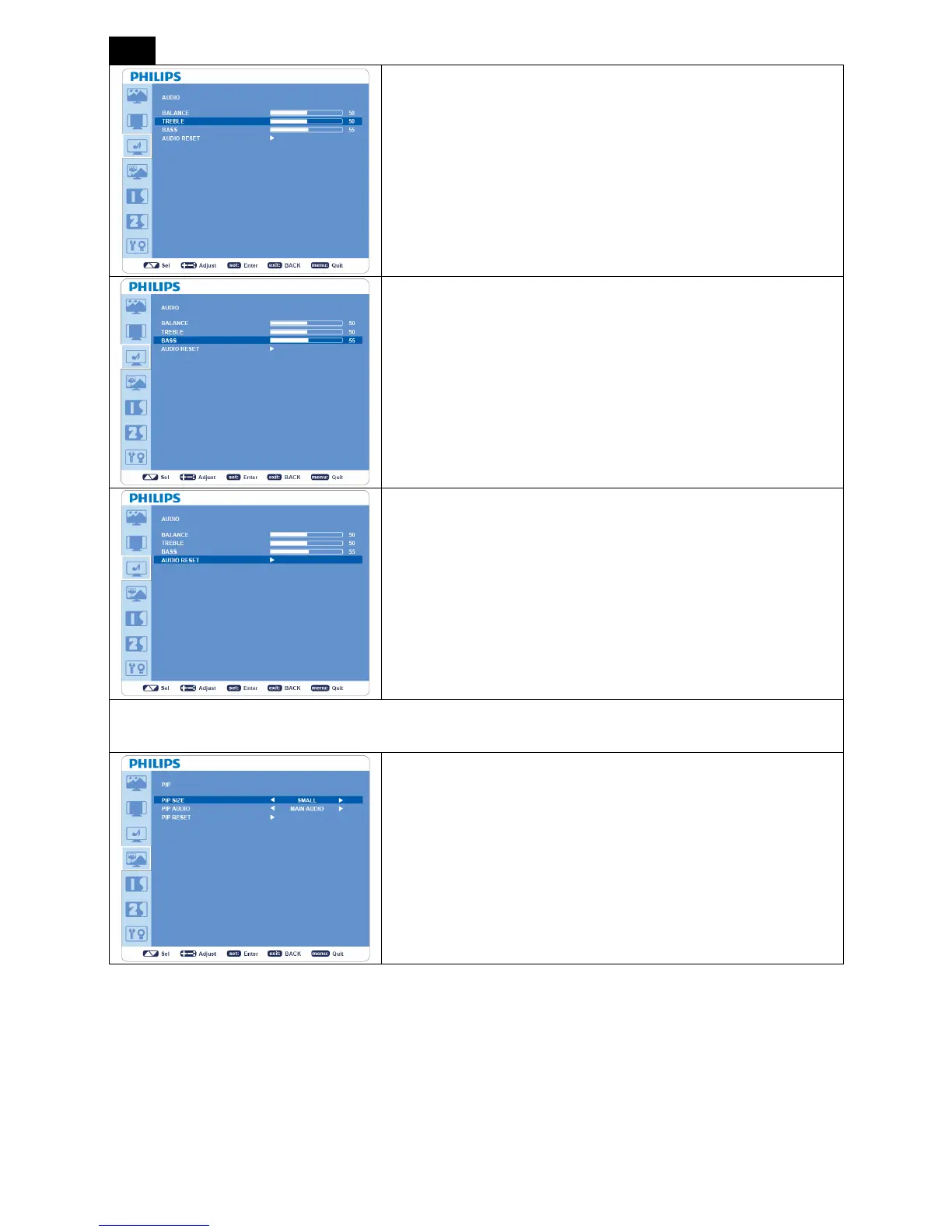 The “PIP” and “POP” modes do not function when the screen size is set to “CUSTOM”or “REAL”.