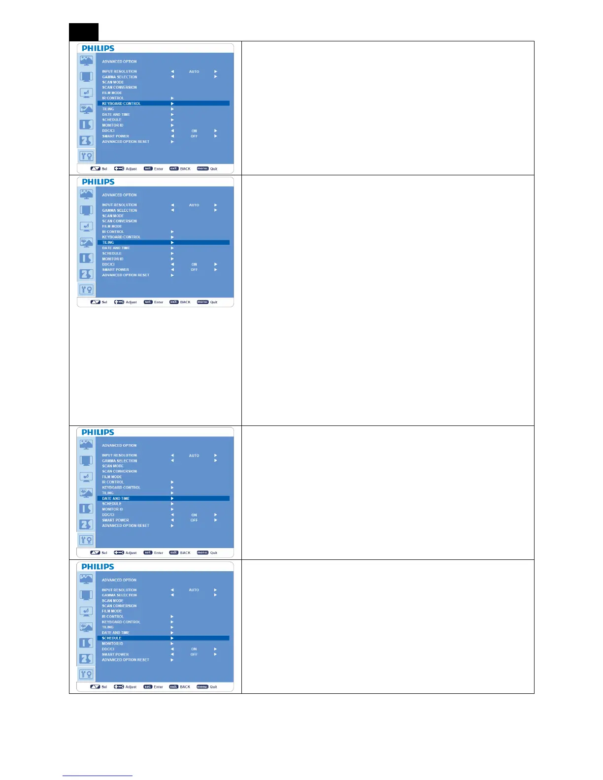 y Programs the monitor working schedule.