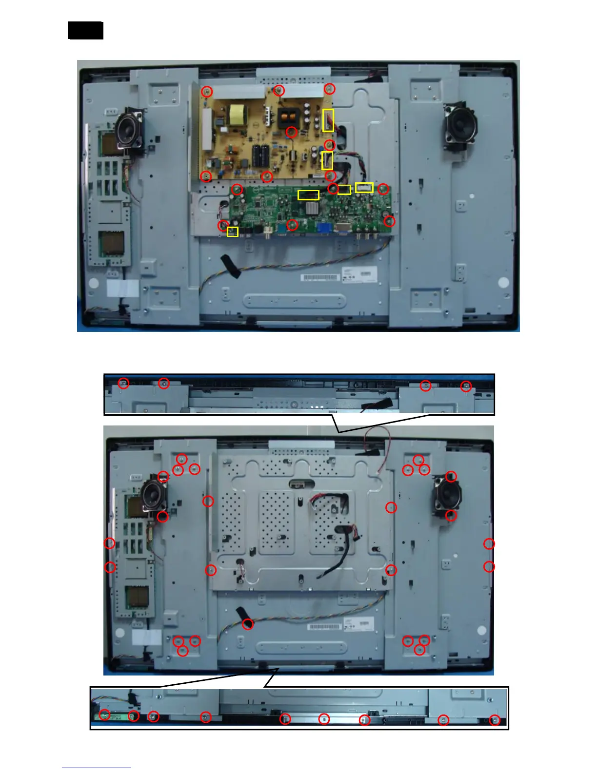 4. Remove all screws to remove the bezel, speakers and the BKTs.