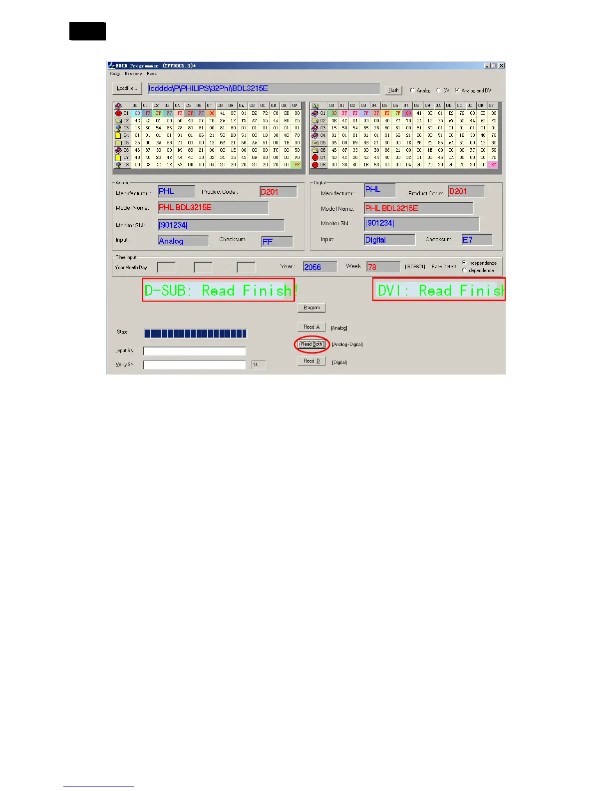 f. Click “ReadBoth”, if the DDC Write is OK, it will show the picture as follow: