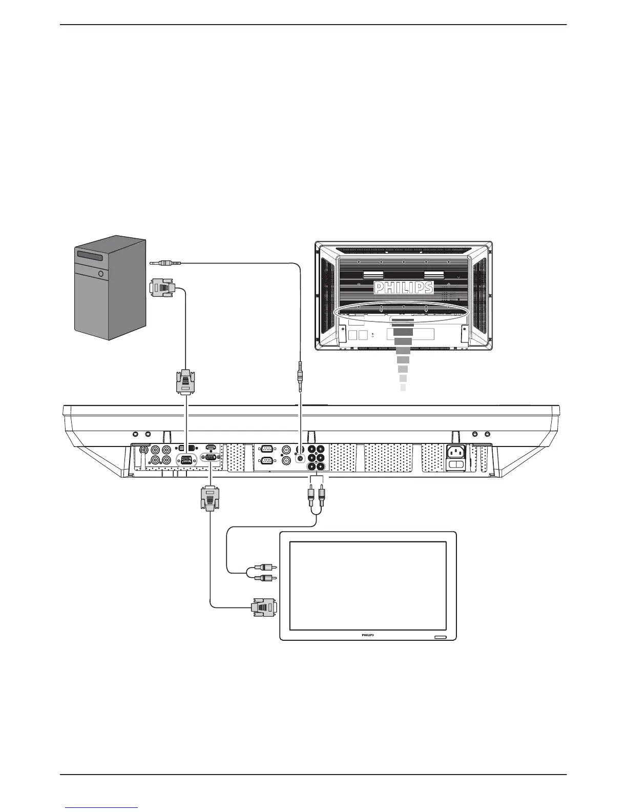 When connecting more than one LCD monitors to PC, apply RCA cable to make connection between LCD monitor (AUDIO OUT