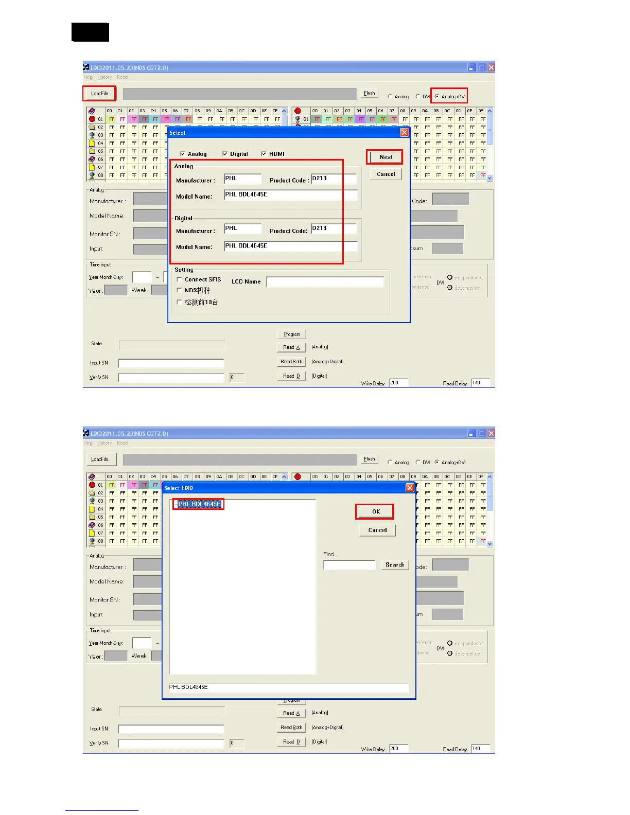 2. Tick the “Analog +DVI” and click “Loadfile” to set the parameters.