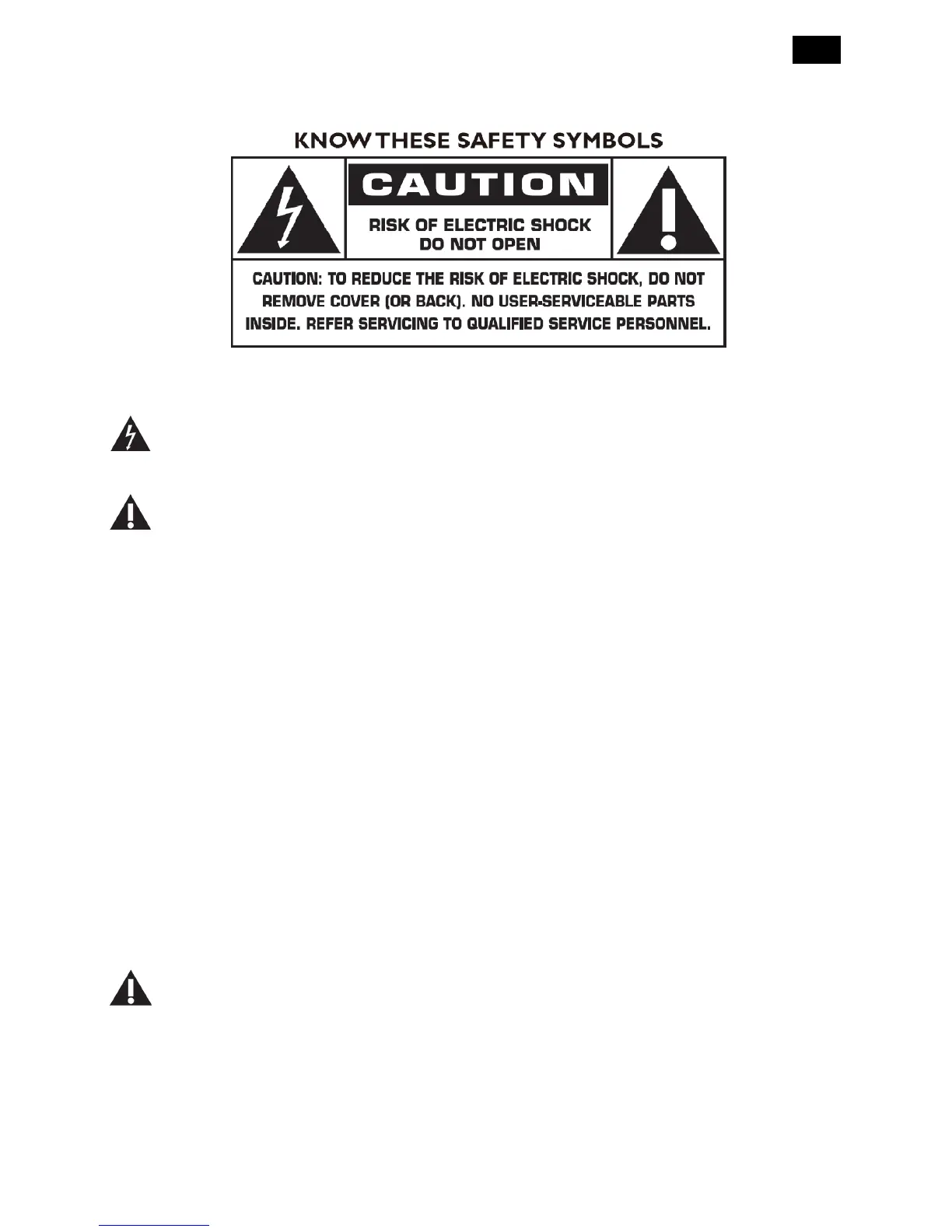 CAUTION: TO REDUCE THE RISK OF ELECTRIC SHOCK, DO NOT REMOVE COVER (OR BACK). NO USER