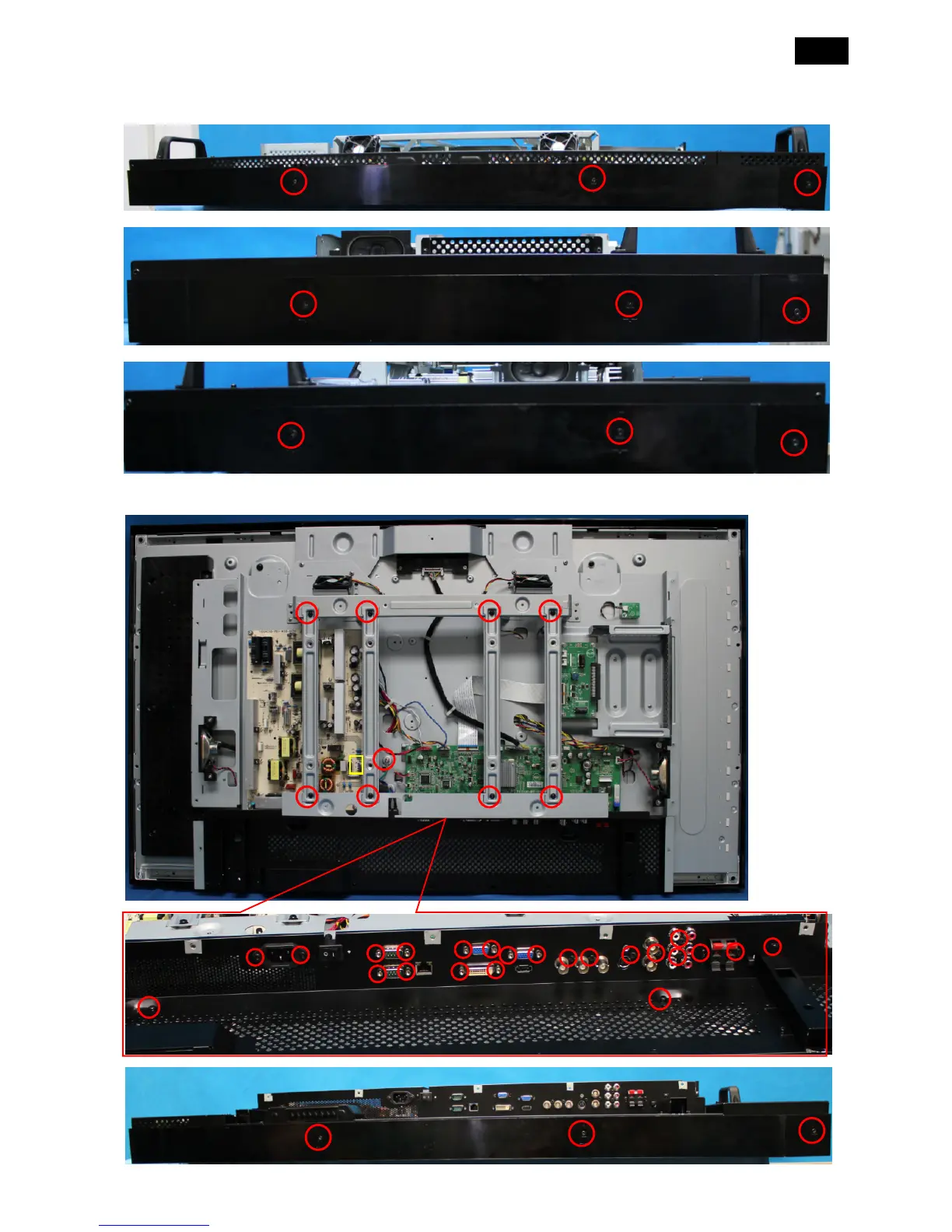 1) Remove the BEZEL TOP, BEZEL RIGHT and BEZEL LEFT.