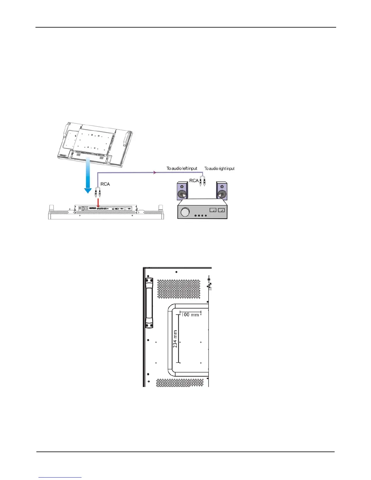 • Apply 2 RCA cables (audio left and right) to make connection between the amplifier (audio in) and the LCD monitor (audio out).