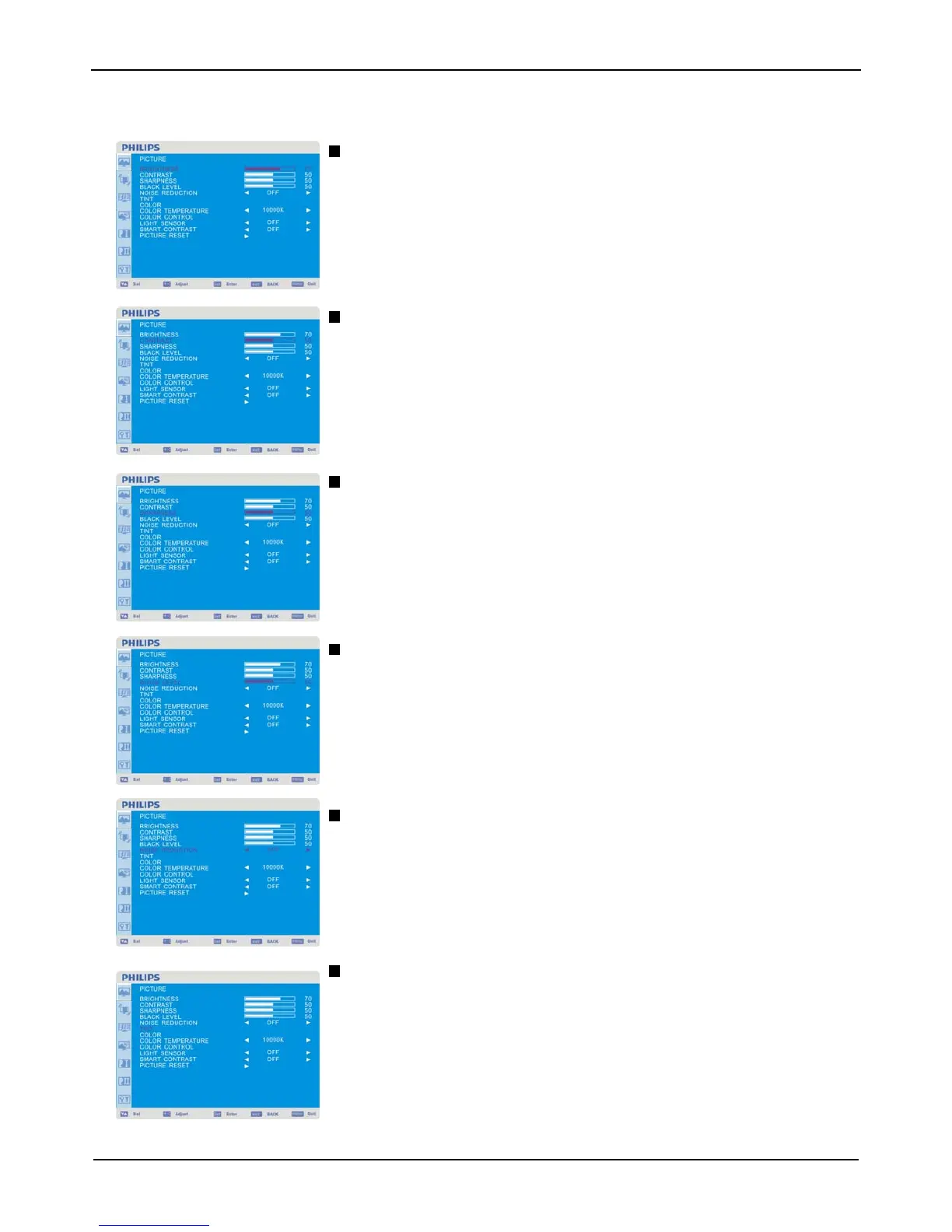 Press - button to decrease black level.