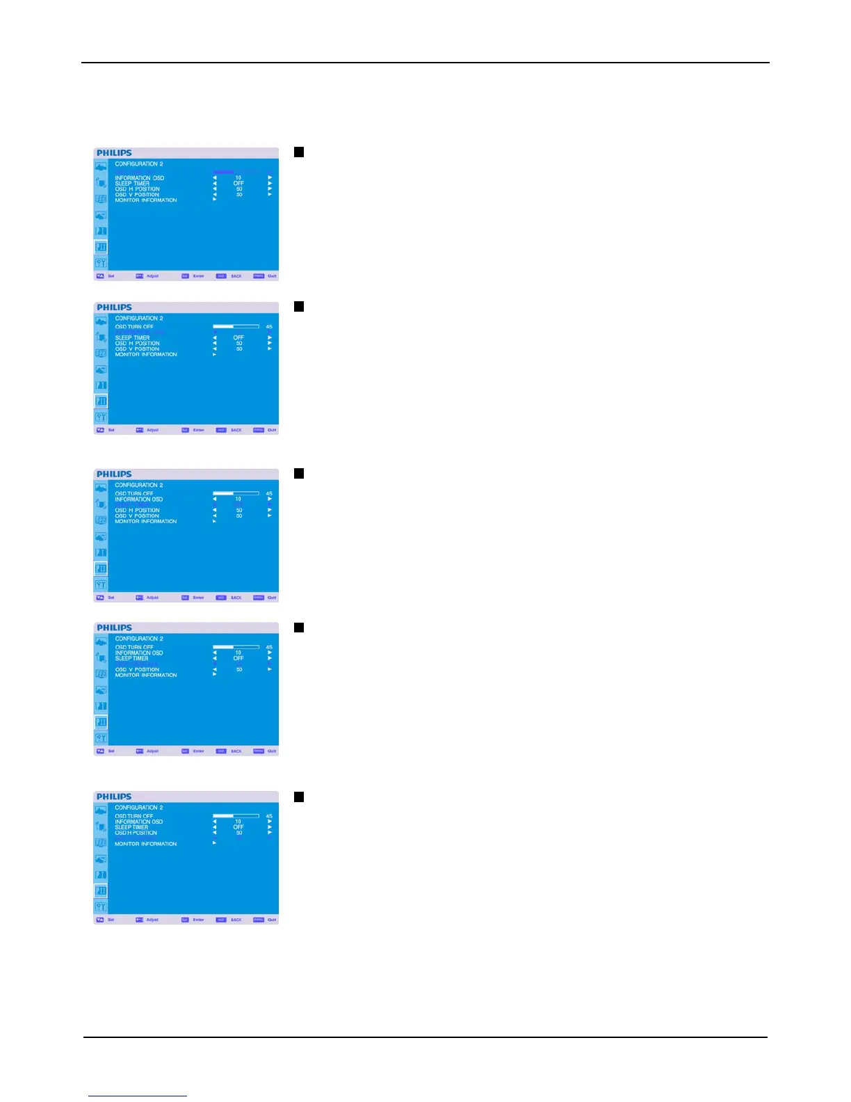 The OSD control menu will stay on as long as it is used. In the OSD Turn Off submenu, you can select