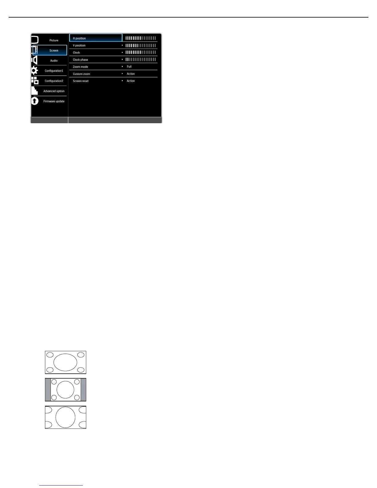 This function allows you to optimize the picture display on screen. The following zoom modes are available: