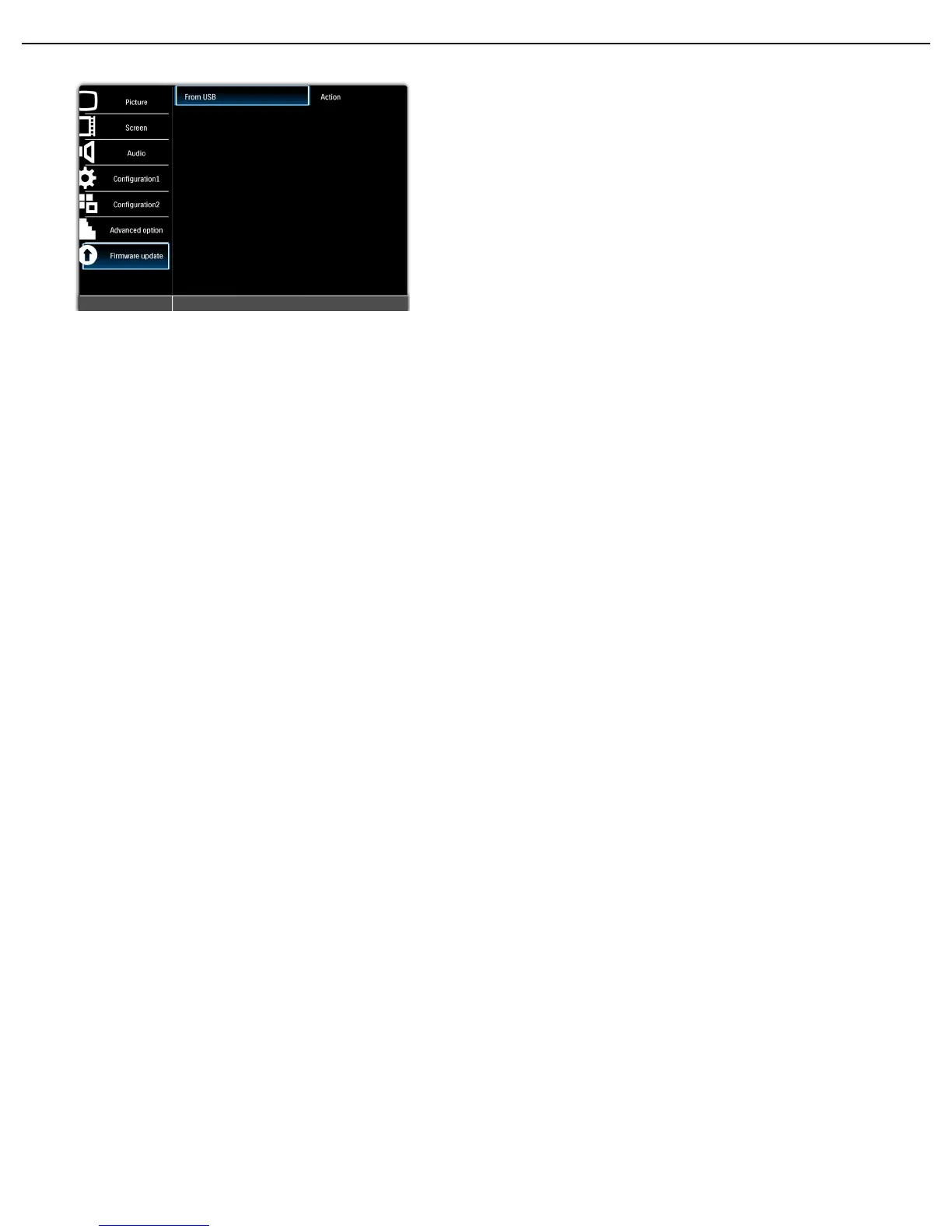 5. Highlight Action in the Firmware update > From USB menu and press SET.