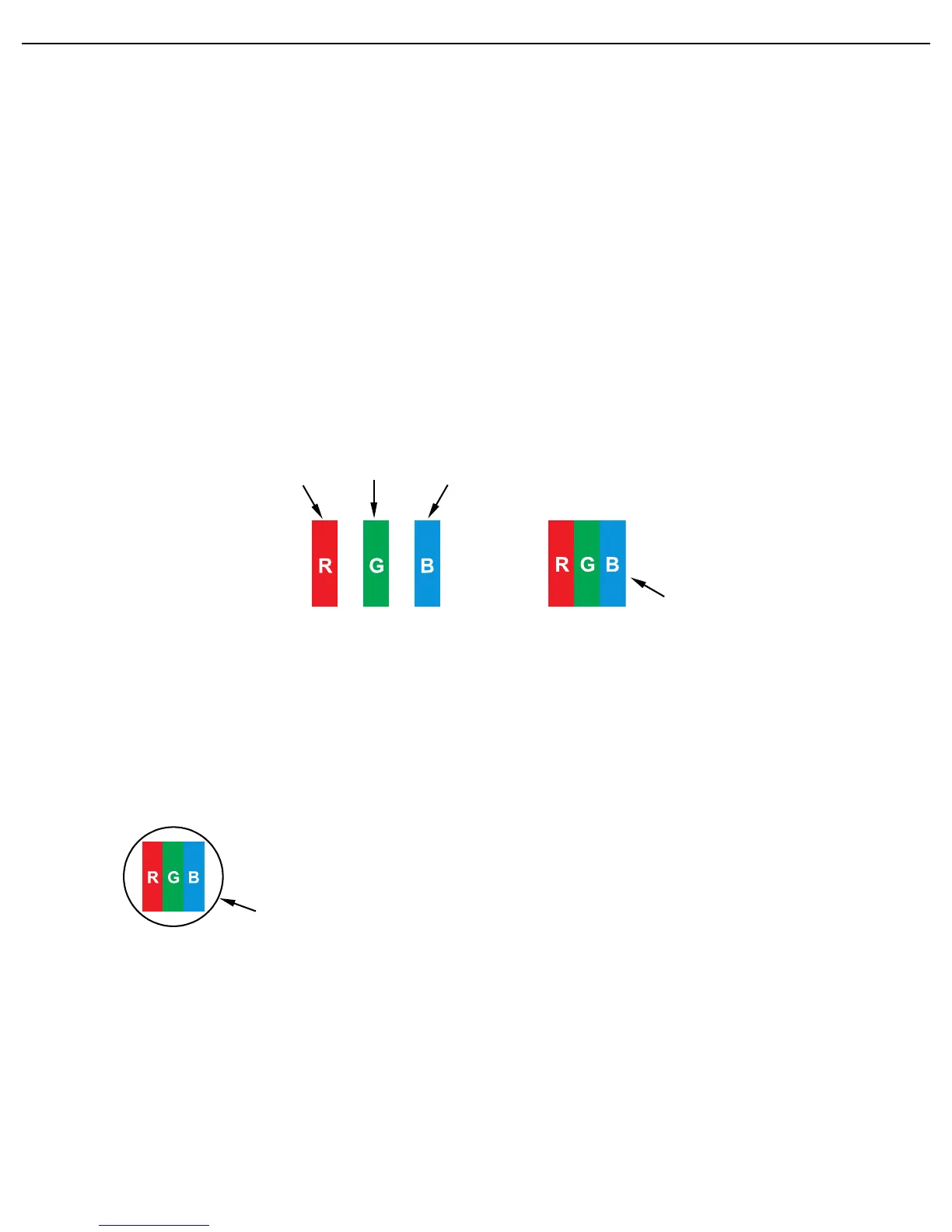 white pixel. When all are dark, the three colored sub-pixels together appear as a single black pixel. Other combinations