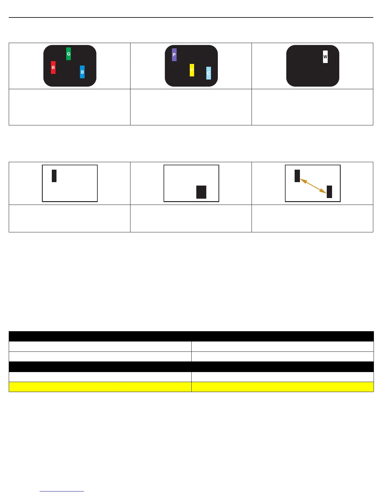 specifies tolerances for the proximity of pixel defects. In the table below you can find specifications about:
