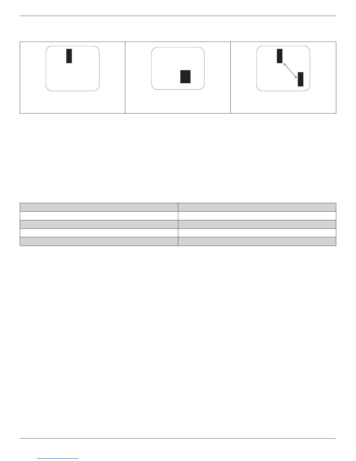 pixel defects exceeding the tolerances listed in the following table.
