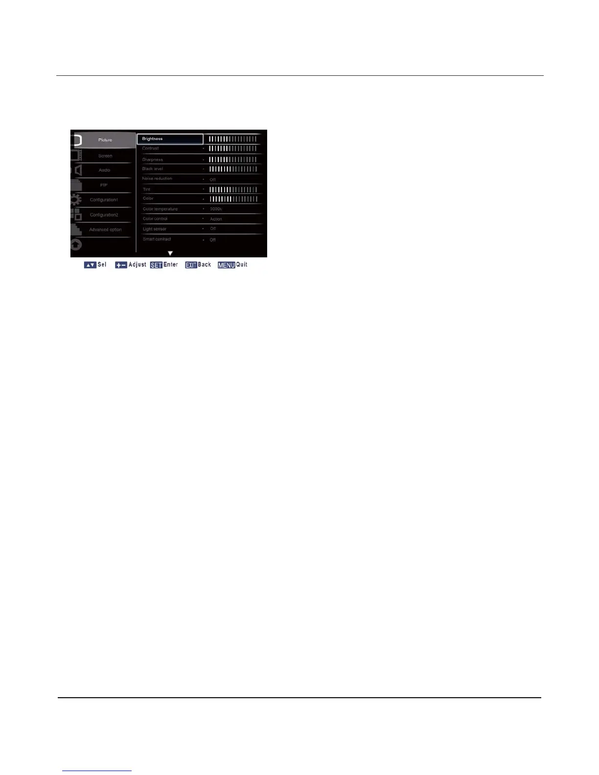 Adjust to sharpen the picture quality. The black portions of the picture become richer and the whites