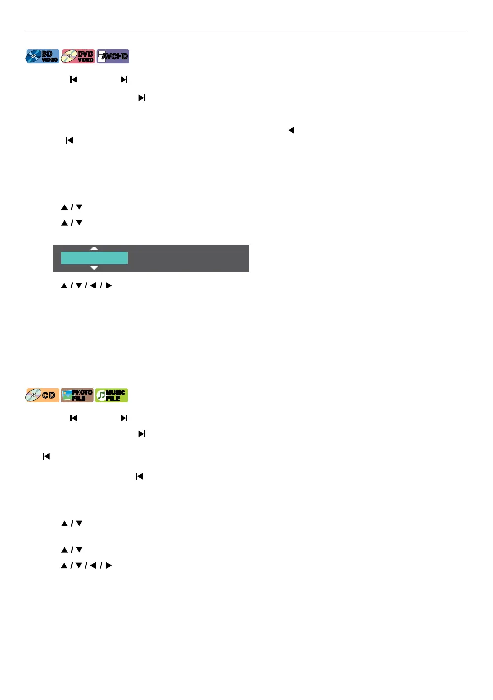 The track / file will move forward one at a time. To go back to the beginning of the current track / file, press