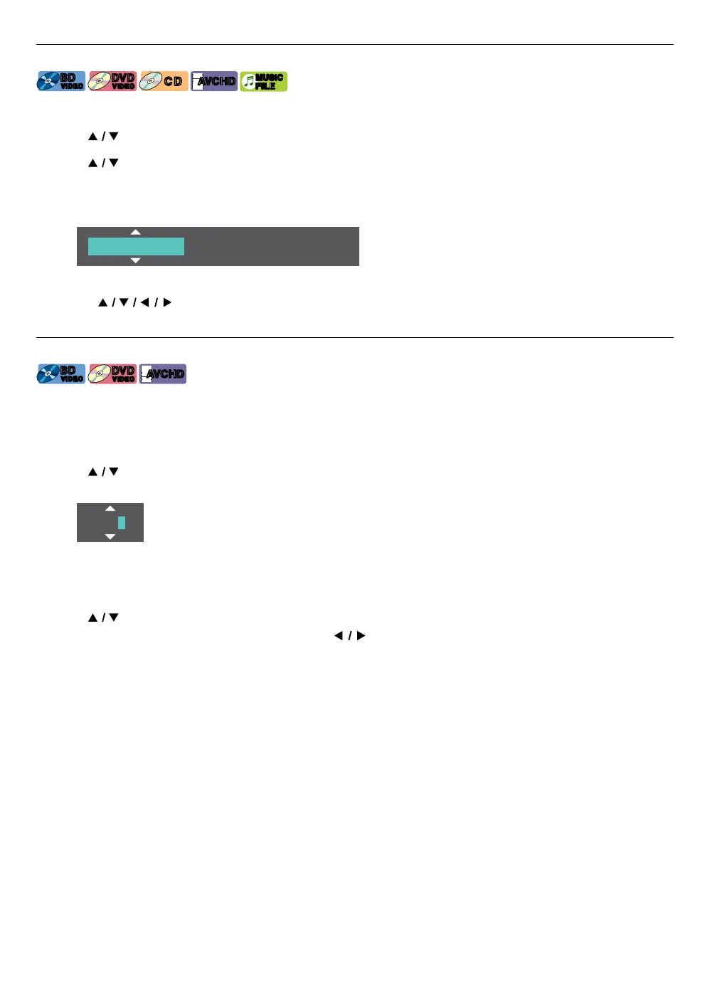 • For BD-videos and AVCHD files, the number select menu is displayed even if there is no button menu in the