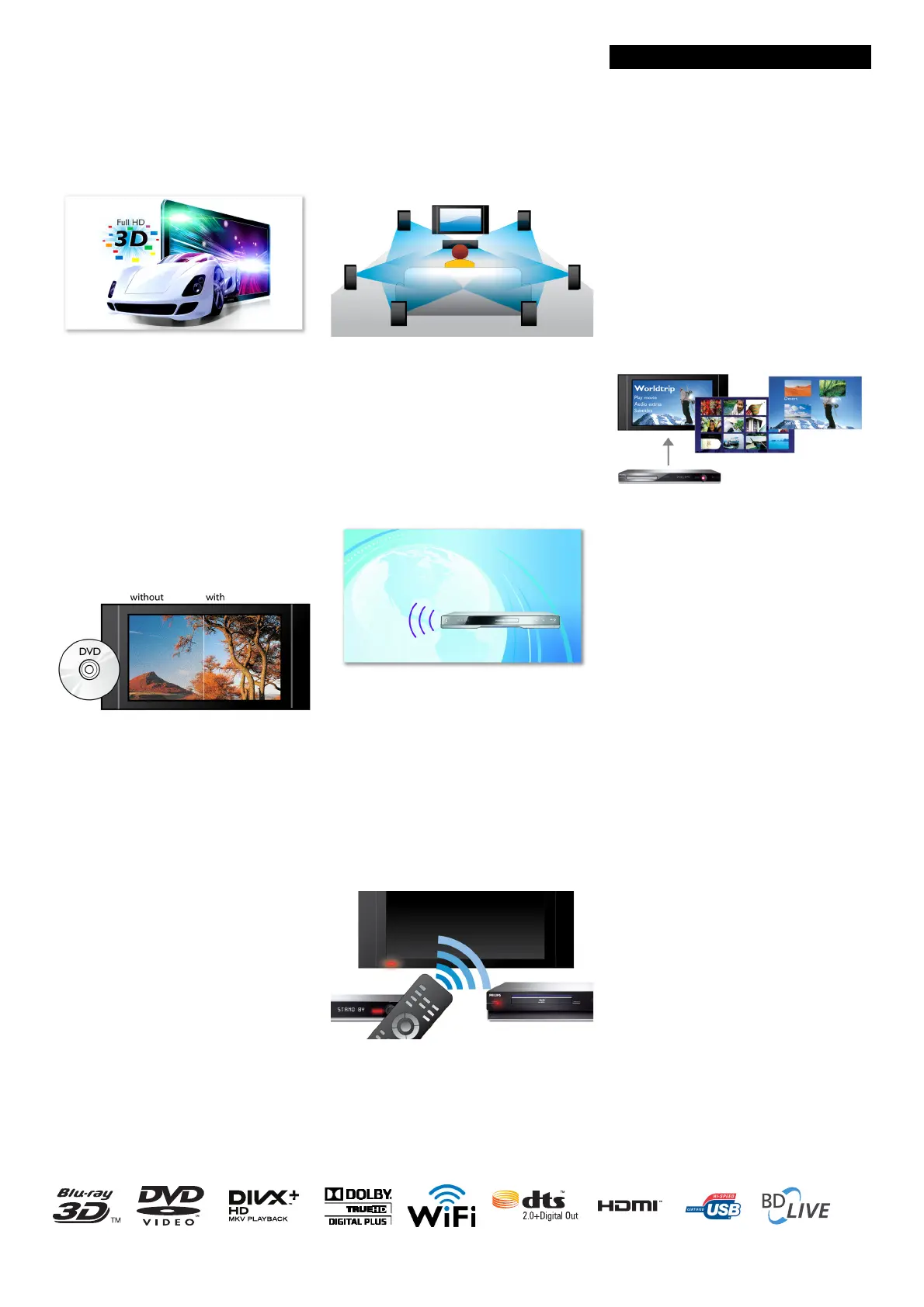 3D Blu-ray Disc playback Miracast™, DivX Plus HD, Built-in WiFi