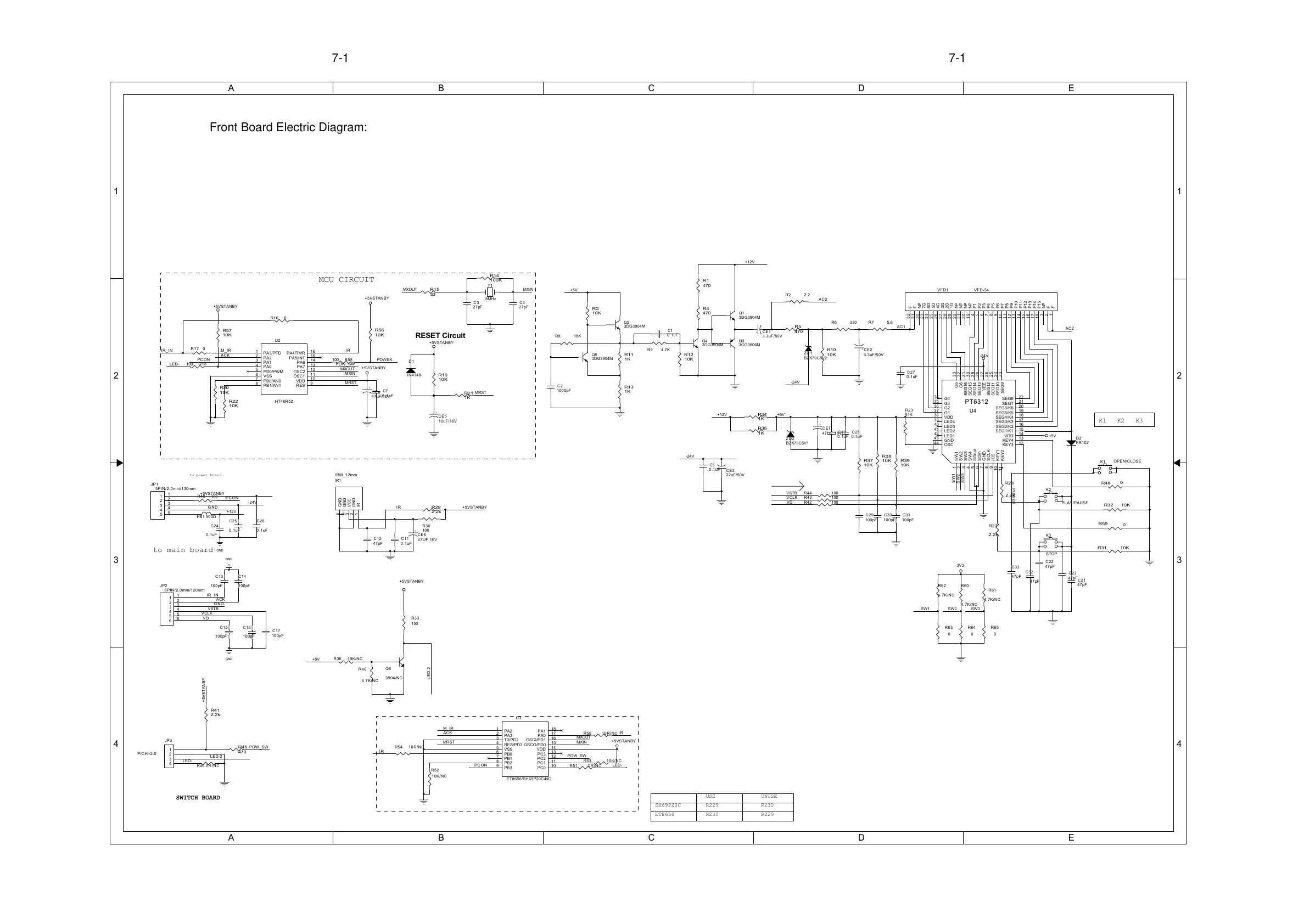 Front Board Electric Diagram: