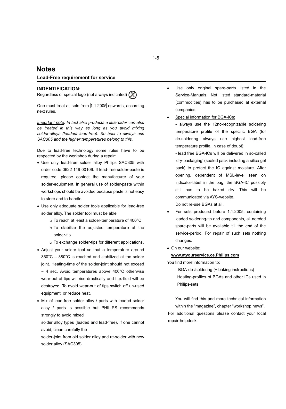 x Use only lead-free solder alloy Philips SAC305 with