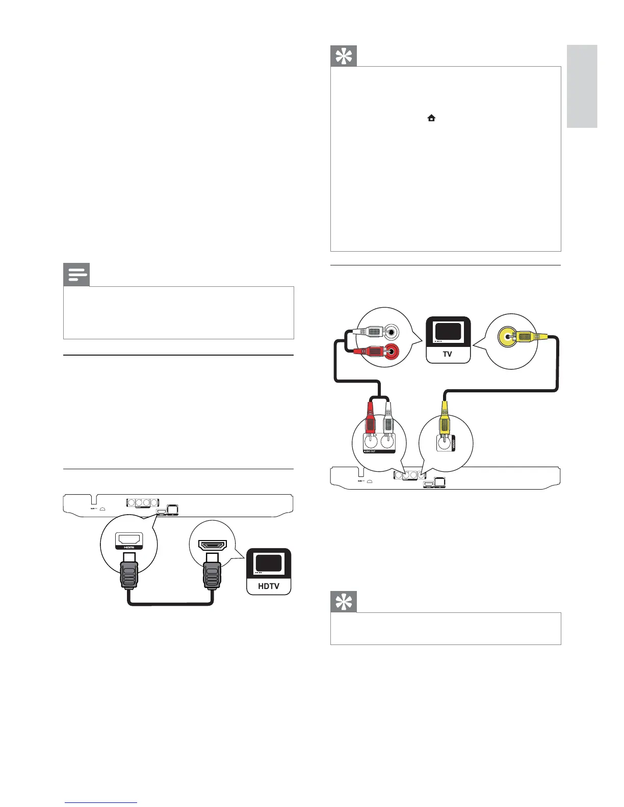 1 Connect an HDMI cable (not supplied) to: