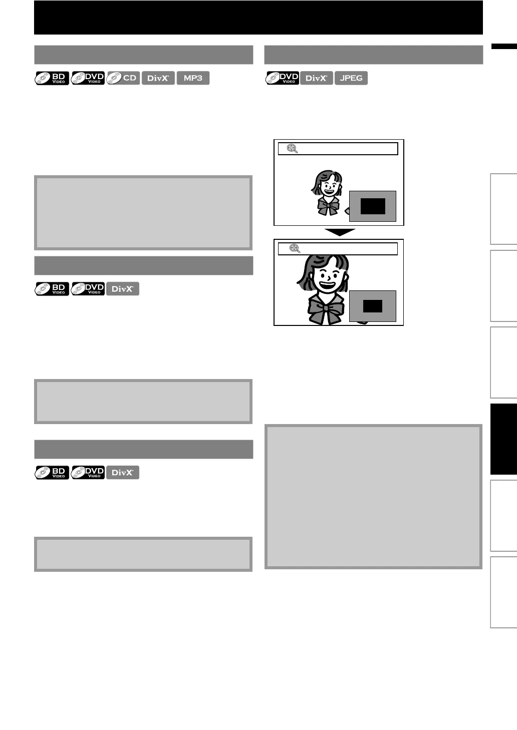 • For DivX® and JPEG files, 4x zoom is not available.