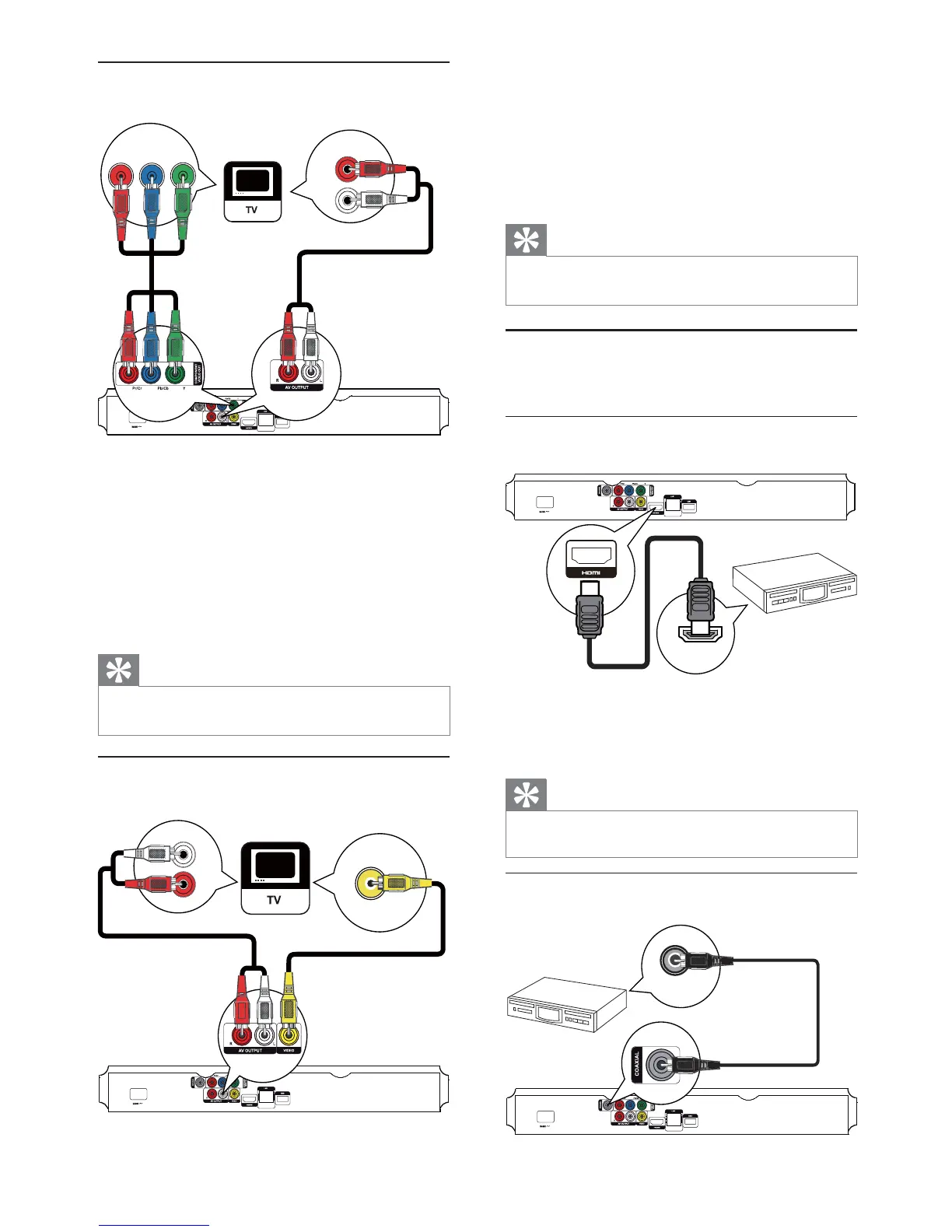 1 Connect the component video cables (not